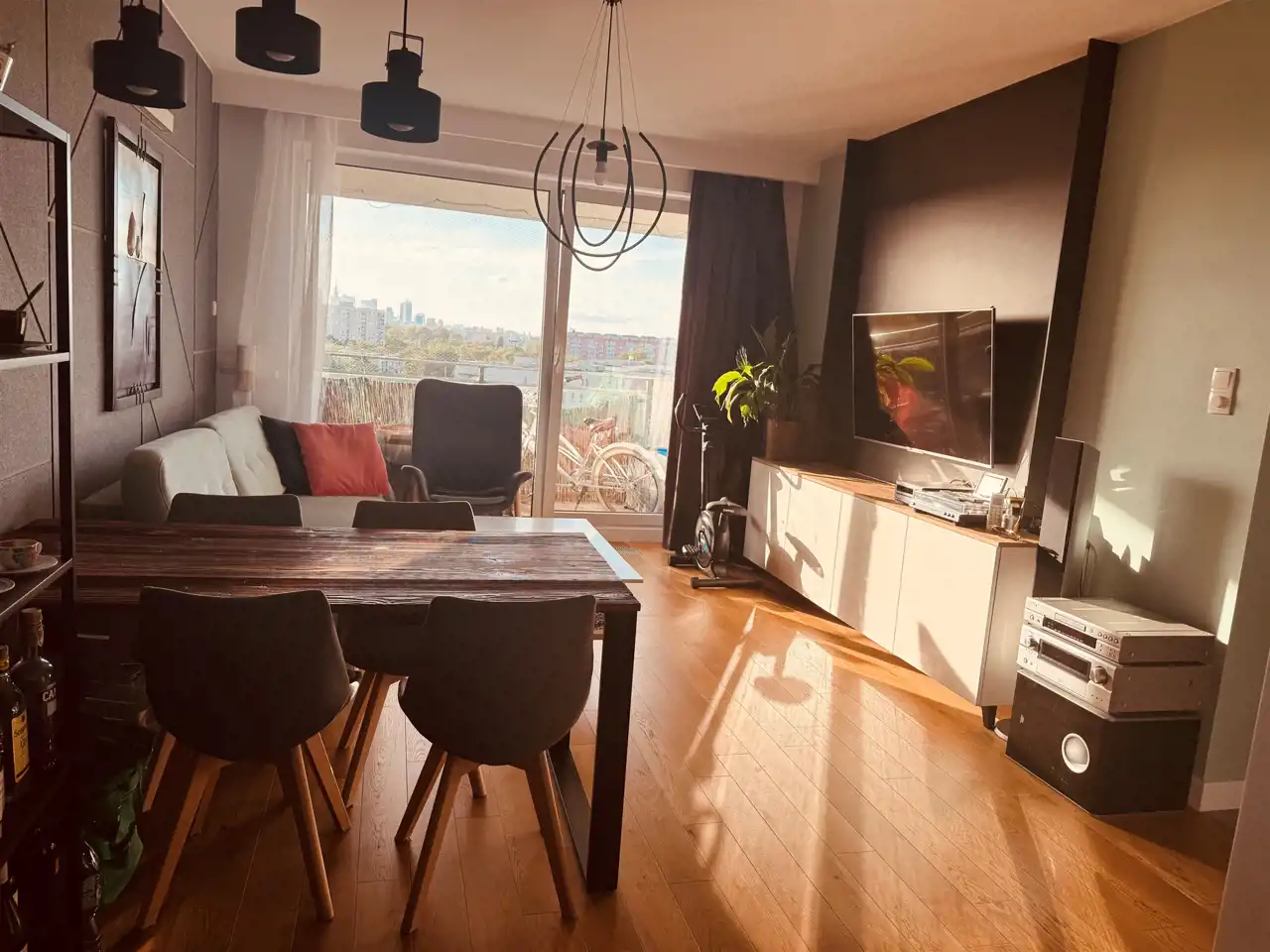Głównymi atutami nieruchomości są wysoki standard wykończenia, zachodnia ekspozycja z widokiem na centrum Warszawy oraz nowoczesny budynek z lobby i całodobową ochroną.