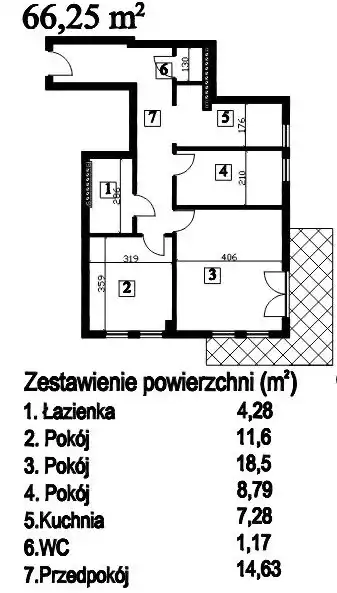 - Charakterystyka mieszkania 66.25 m2, 3 pokoje
