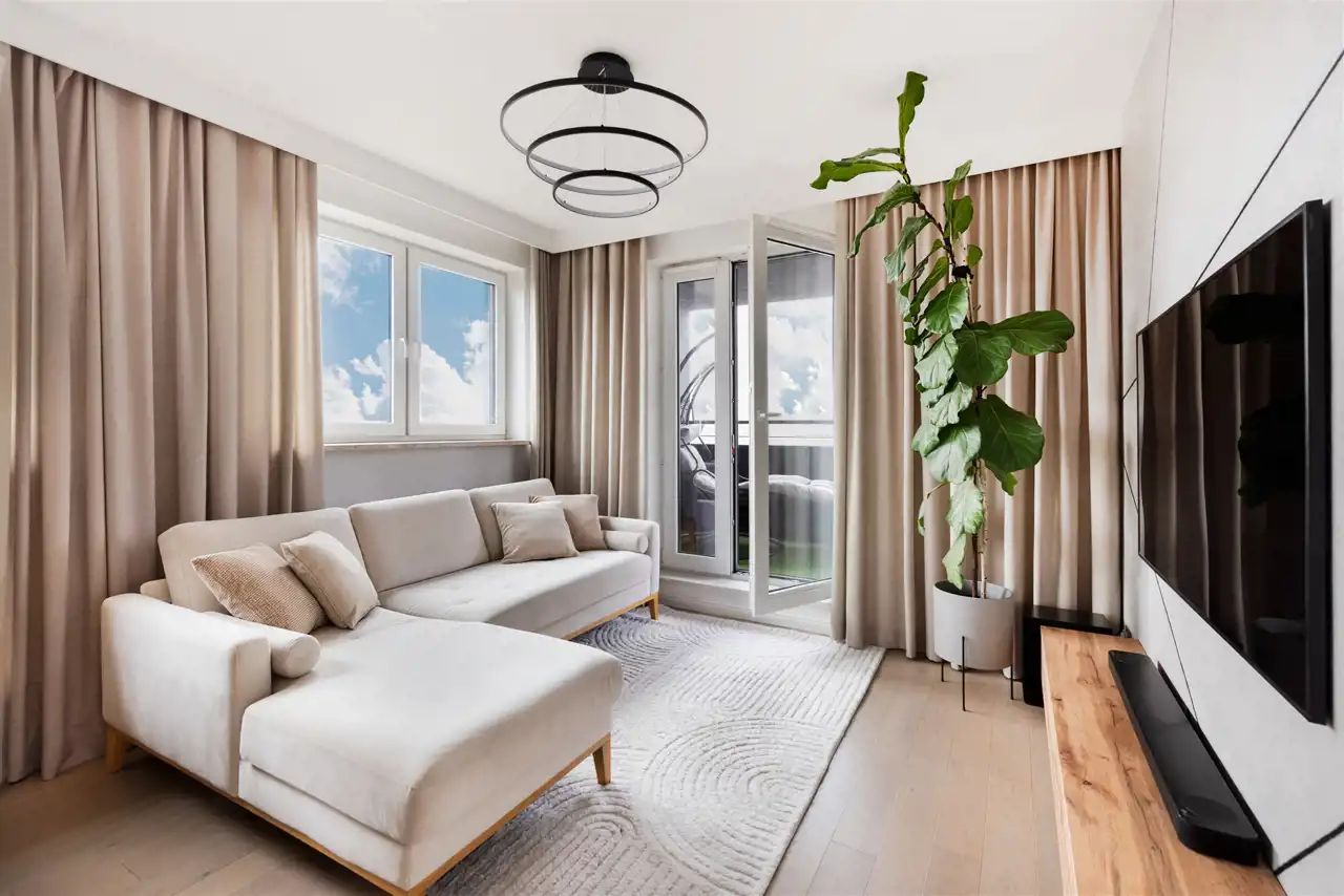 Ekspozycja południe - zachód sprawia, że mieszkanie jest jasne przez cały dzień, a duży balkon (ok. 11 m²) stanowi idealne miejsce do odpoczynku.