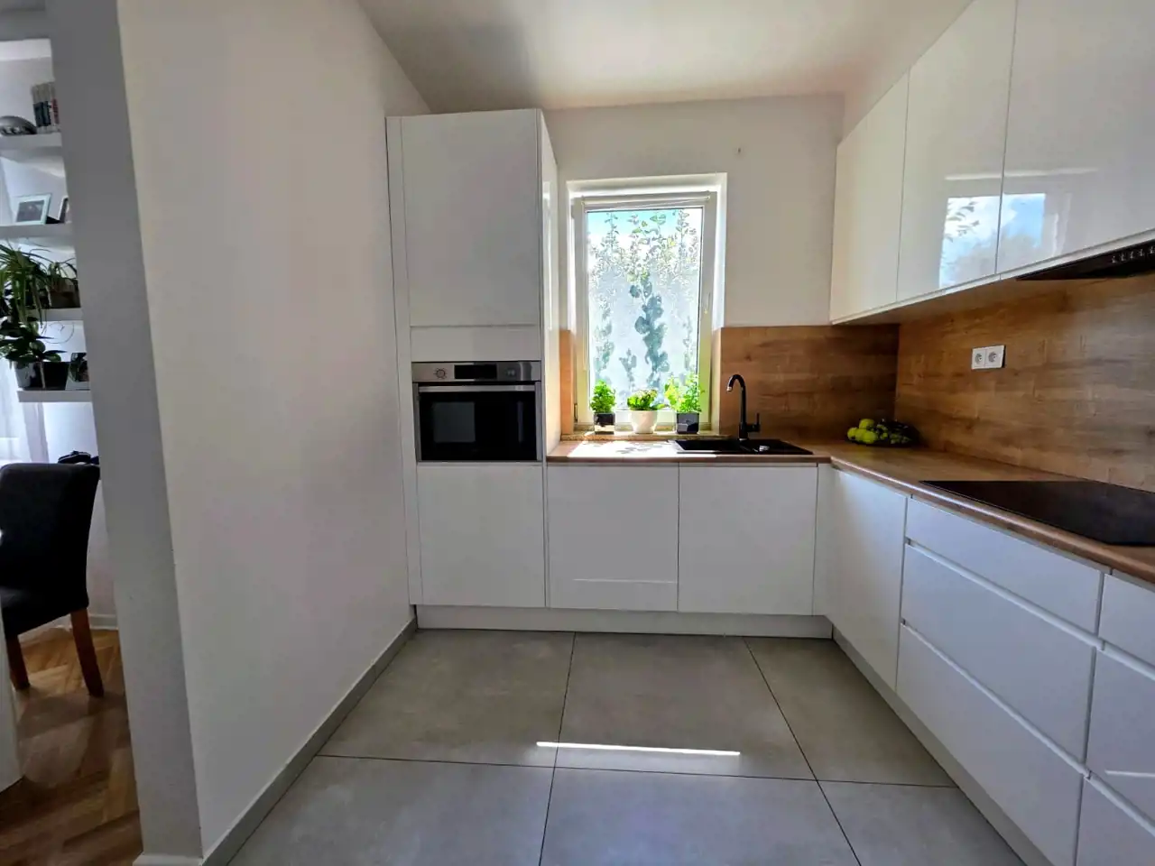 Parkiet jesionowy, dużo szaf. Instalacje: wodna, kanalizacyjna, elektryczna, ogrzewanie gazowe, alarm w mieszkaniu i kamera na zewnątrz - widok na ogród. Budynek z 2002 roku, w bardzo dobrym stanie technicznym.