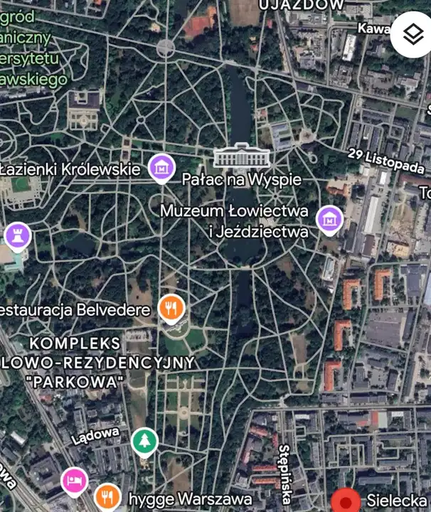 W odległości krótkiego spaceru znajdują się Łazienki Królewskie, Park Morskie Oko oraz Park Sielecki.