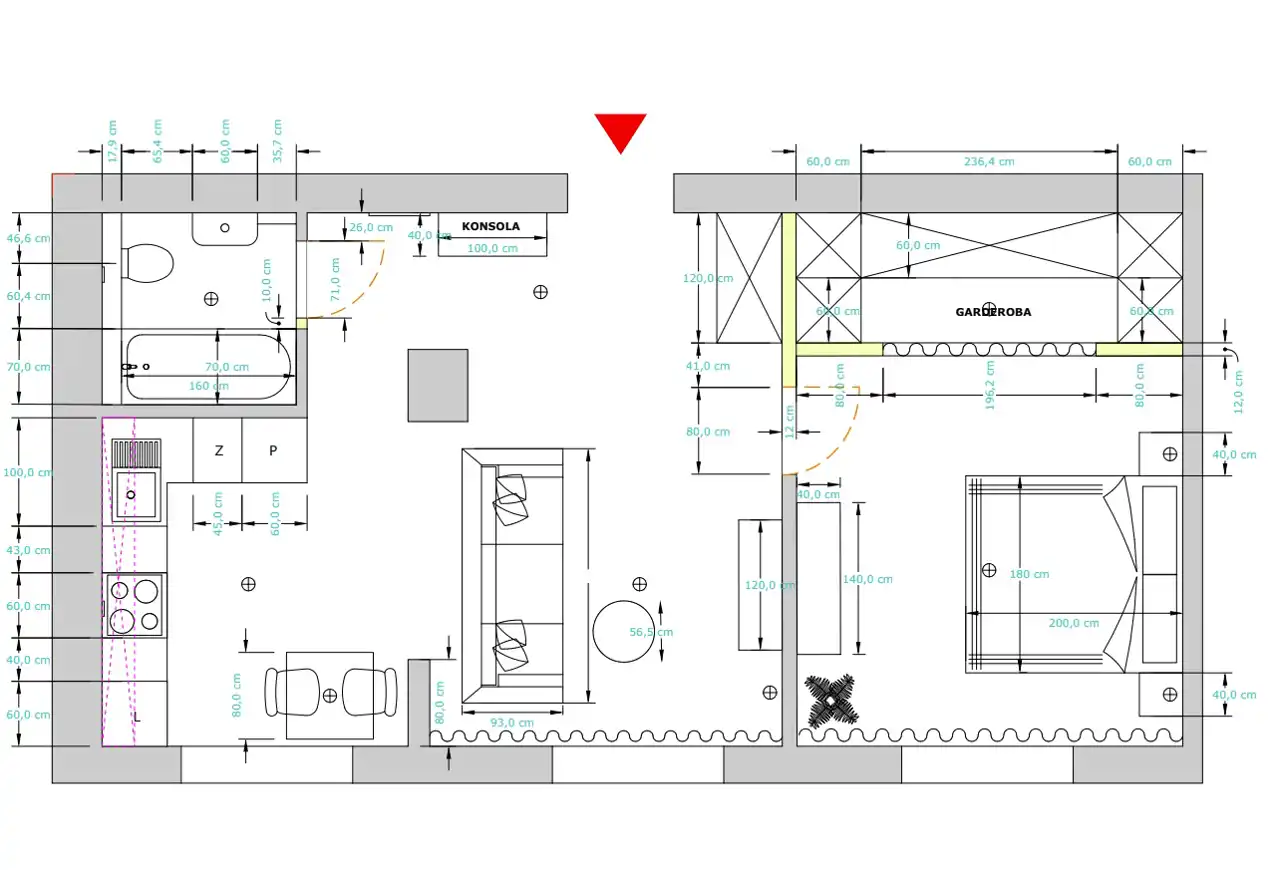 - Charakterystyka mieszkania 46 m2, 2 pokoje