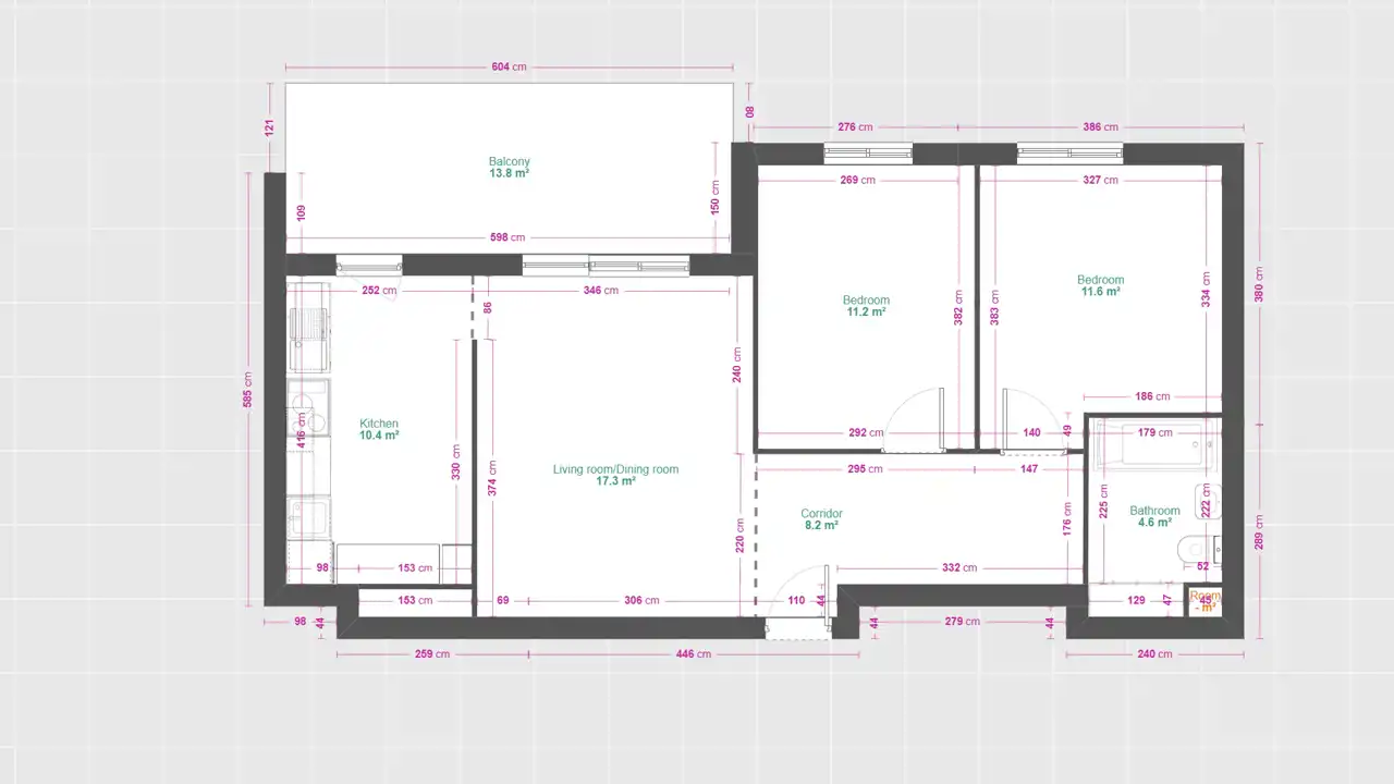 - Charakterystyka mieszkania 63.77 m2, 3 pokoje