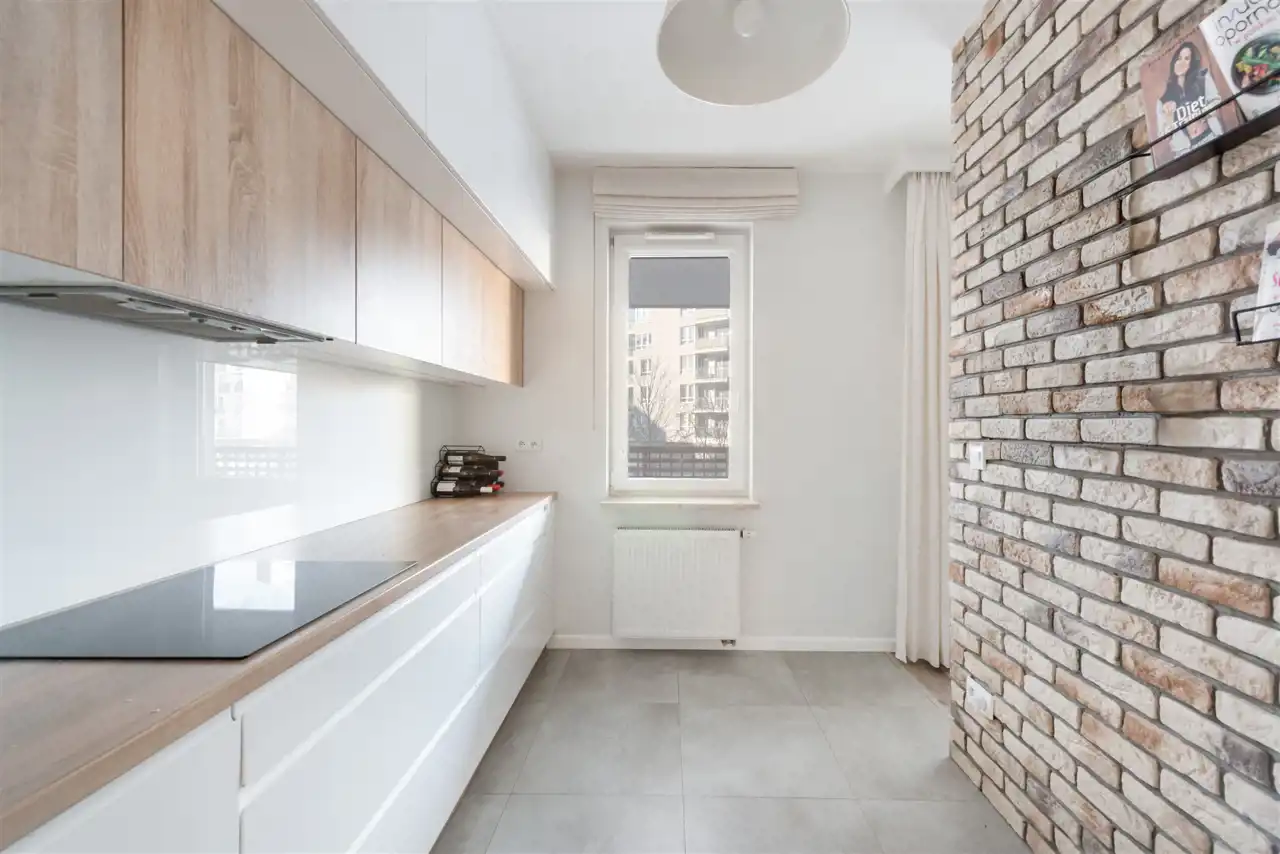 Część dzienna składa się z jasnego salonu oraz oddzielnej, w pełni wyposażonej kuchni wykonanej na wymiar. Z salonu prowadzi wyjście na wyjątkowo dużą loggię o powierzchni 13,77 m², idealną do wypoczynku. Dwie ustawne sypialnie sprawdzą się zarówno jako pokoje dla rodziny, jak i gabinet do pracy. W przedpokoju znajduje się pojemna szafa wykonana na zamówienie, a komfortowa łazienka wyposażona jest w zabudowę meblową, nową pralkę oraz suszarkę (na gwarancji).