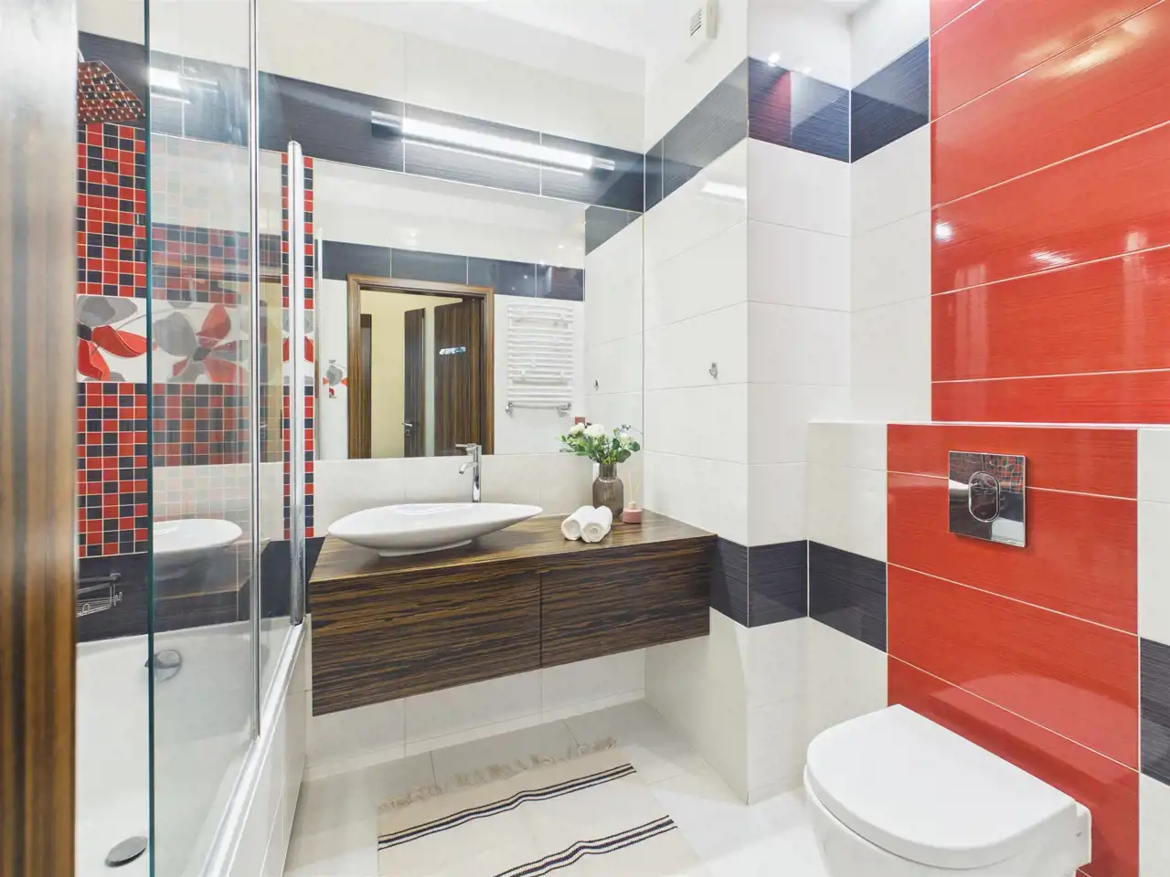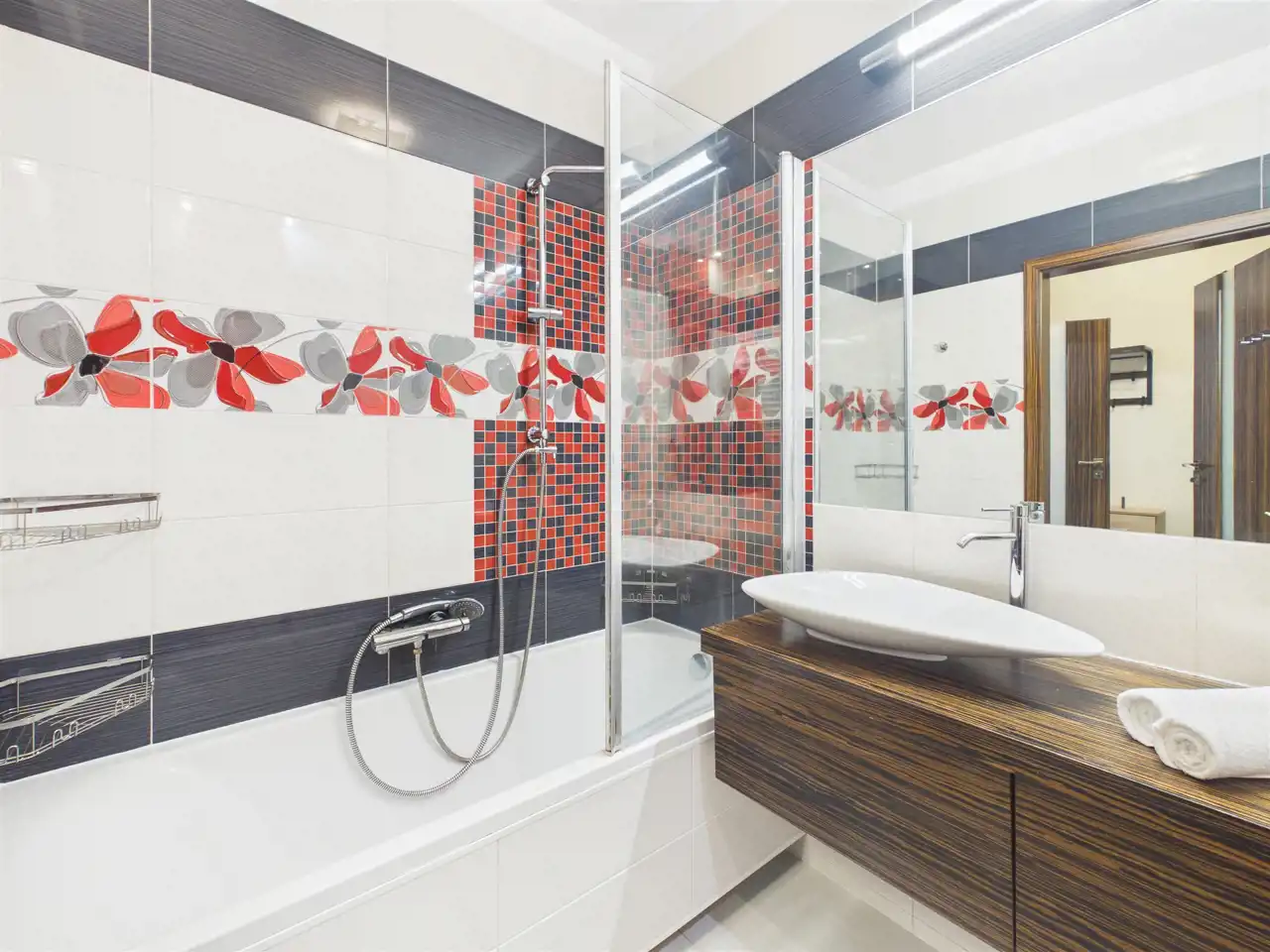 Spacious bathroom with both bathtub and shower
