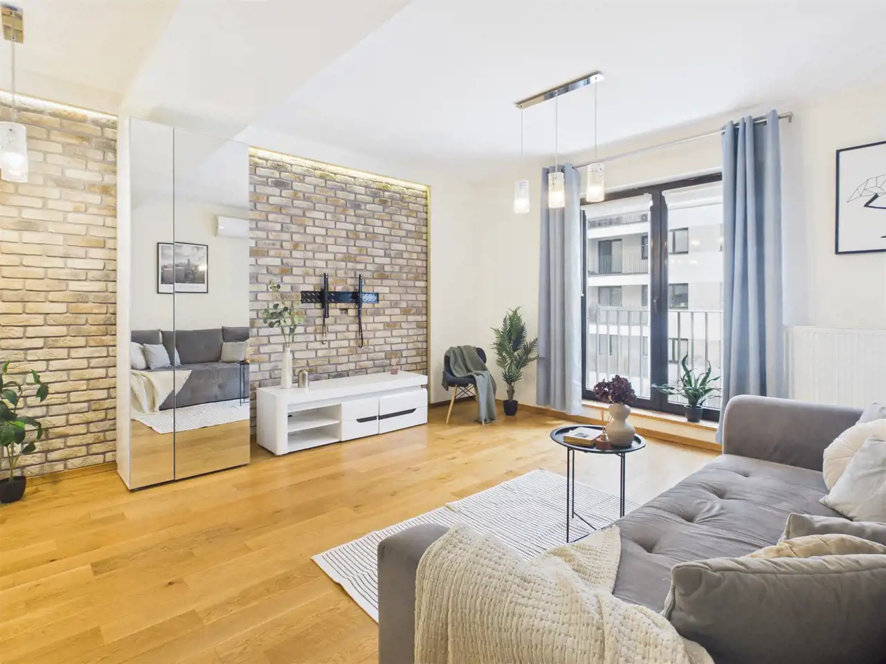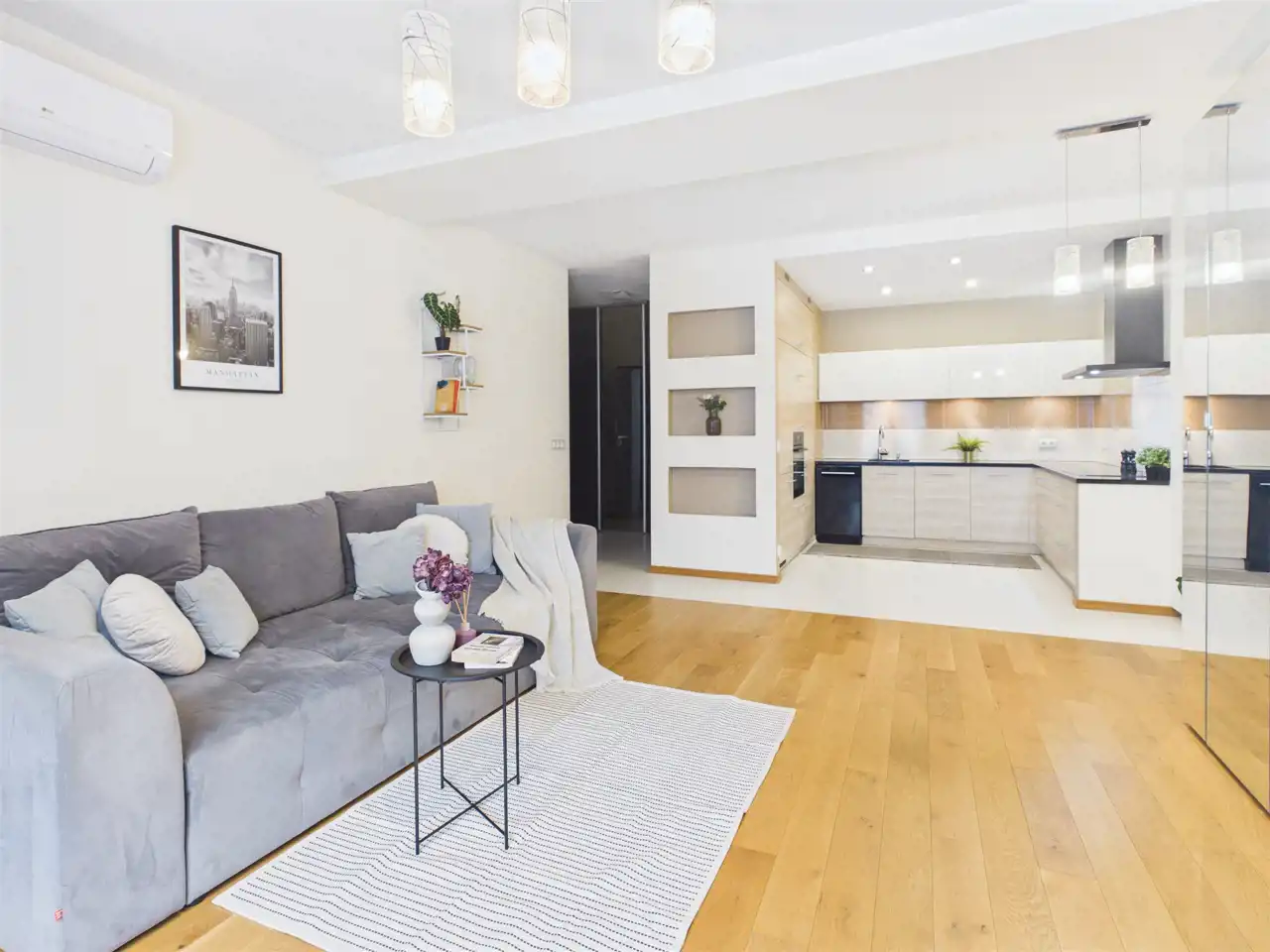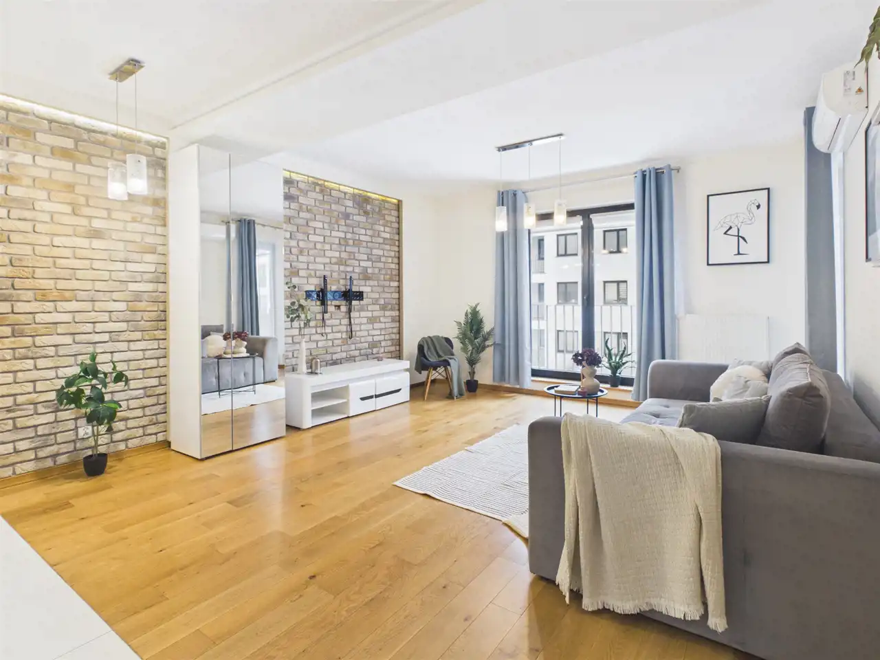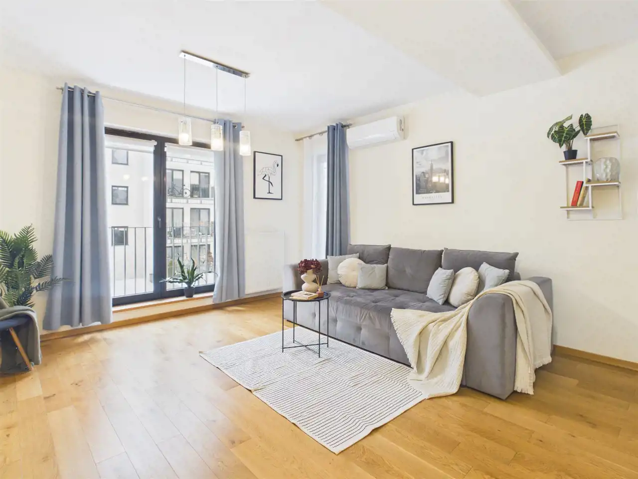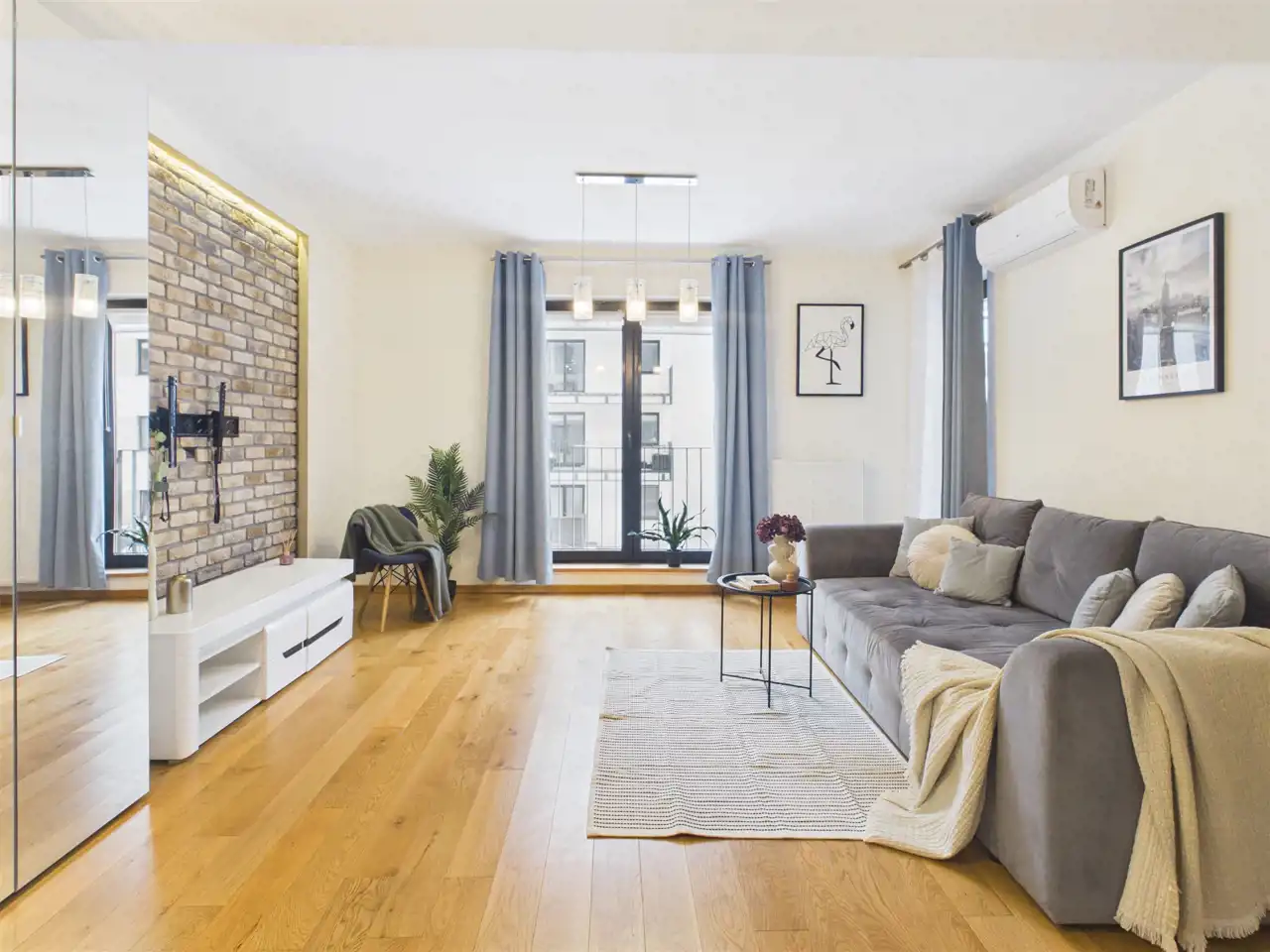 - klimatyzacja w całym mieszkaniu (osobne jednostki w salonie i sypialni)