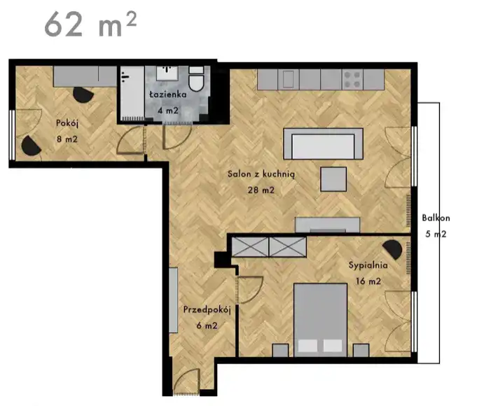 - Charakterystyka mieszkania 62 m2, 3 pokoje