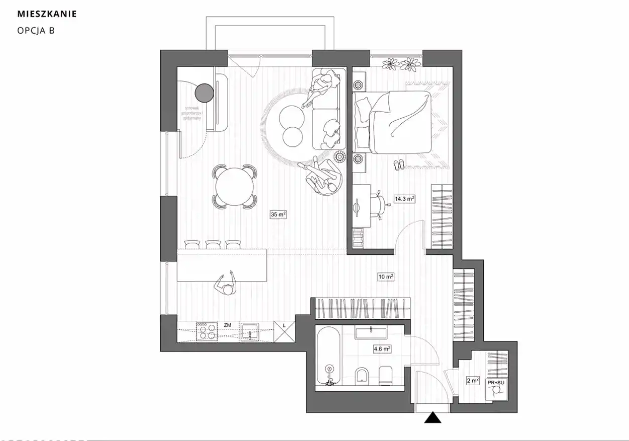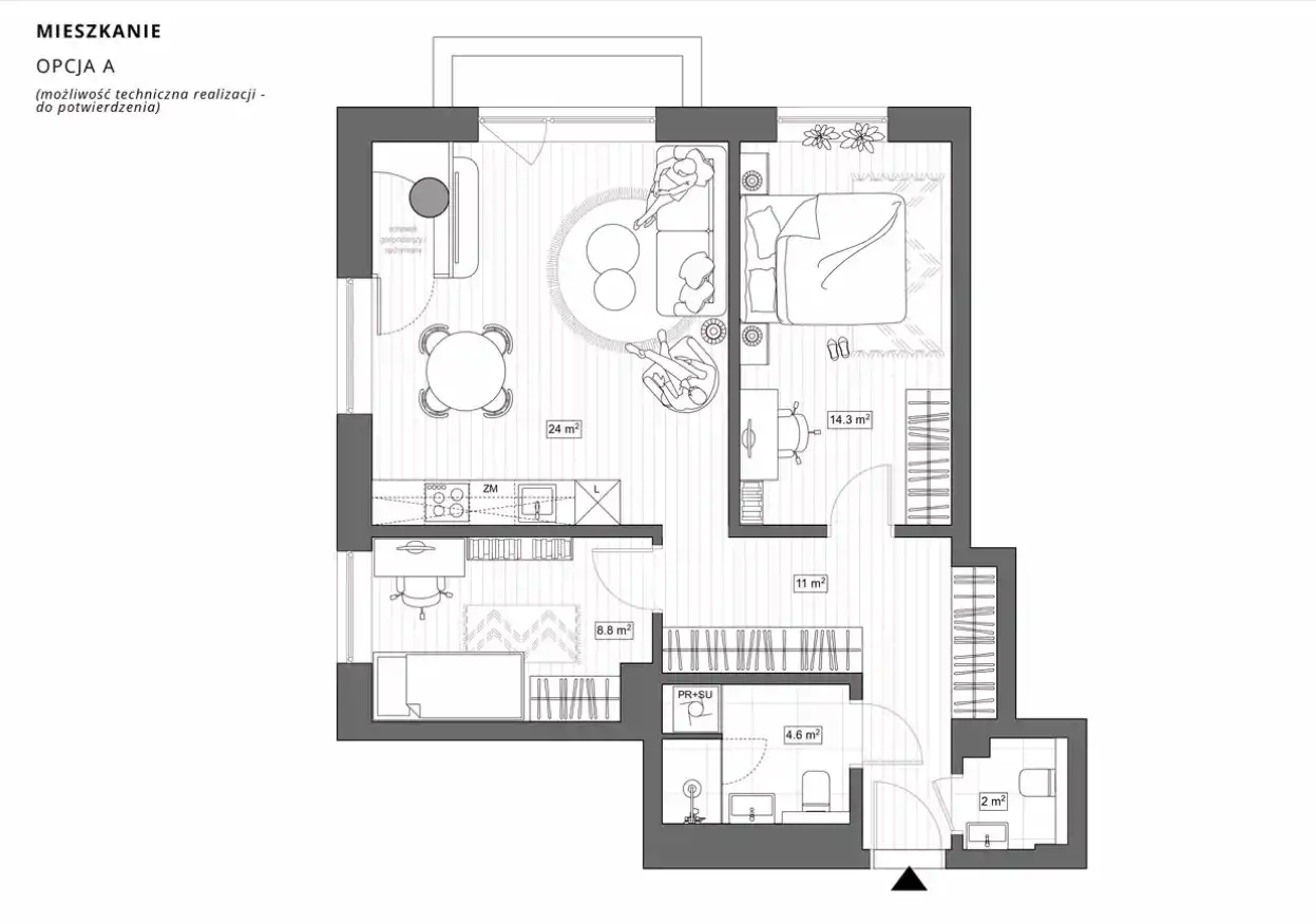 - Wygodne miejsce parkingowe: 11 m² w garażu podziemnym (+40 000 PLN – zakup obligatoryjny)