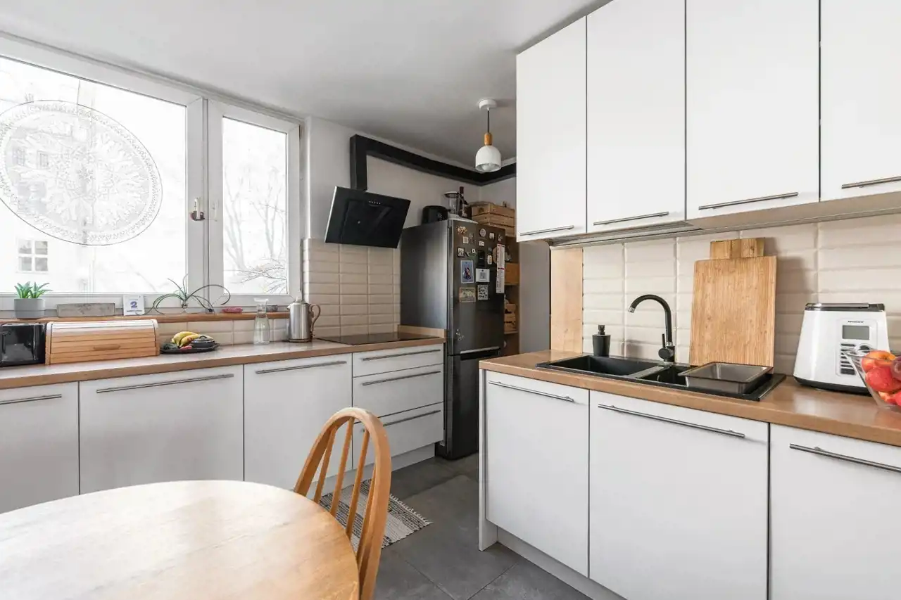 --- Solidne, wysokojakościowe wyposażenie: meble w kuchni, łazience i przedpokoju oraz drewniane parapety robione na wymiar, przez prywatną firmę.