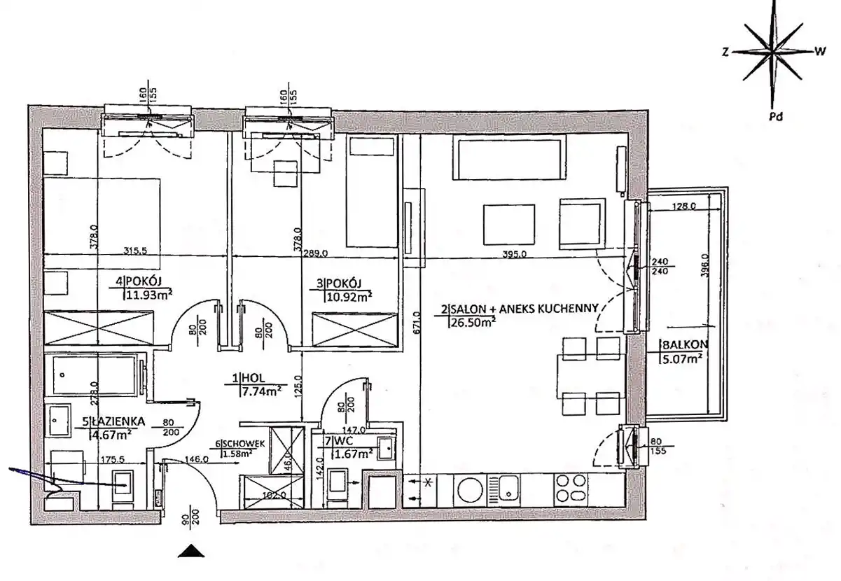- Rozkład mieszkania 3p piętro