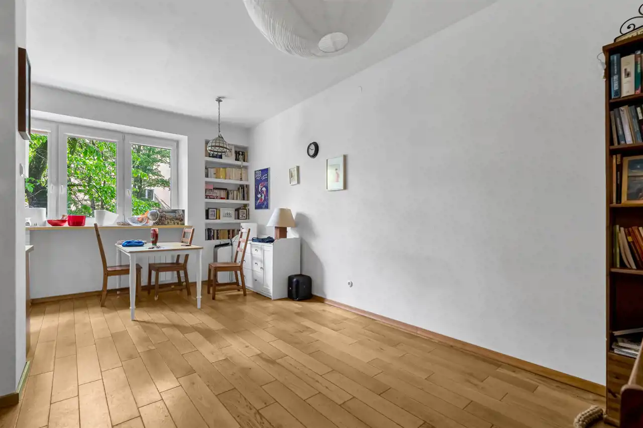 Drewniana podłoga. 500 m od stacji metra Plac Wilsona