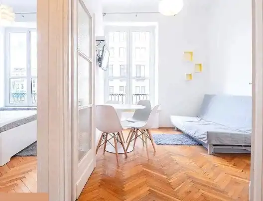- Trzy niezależne pokoje (z widokiem na tętniącą życiem ul. Świętokrzyską),