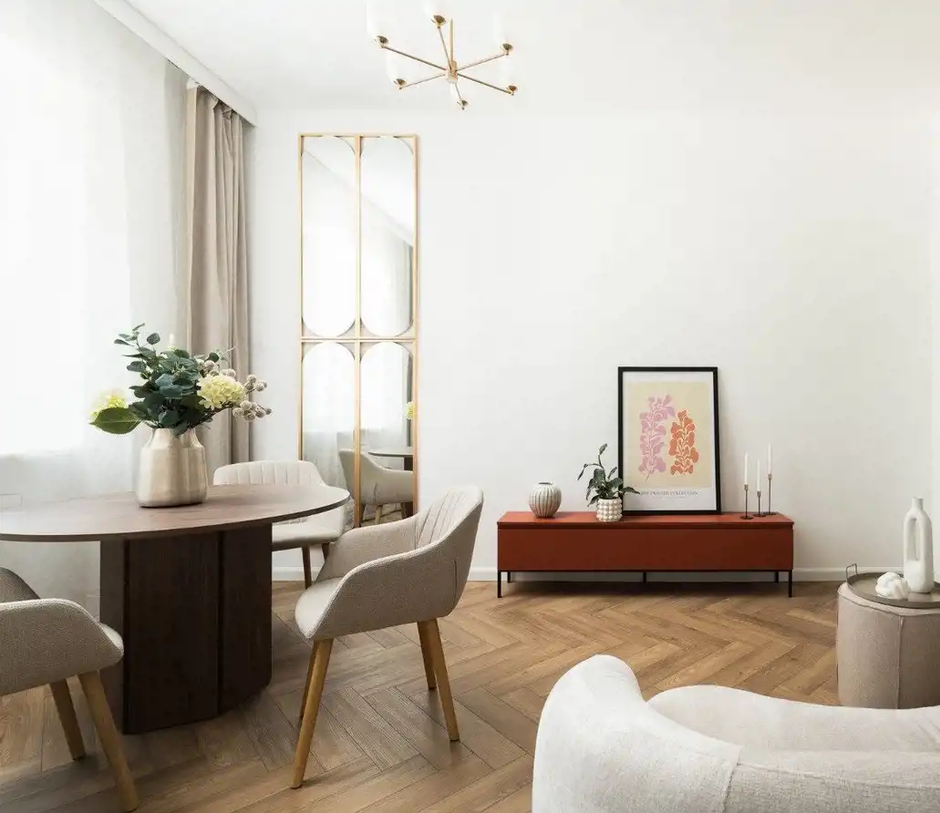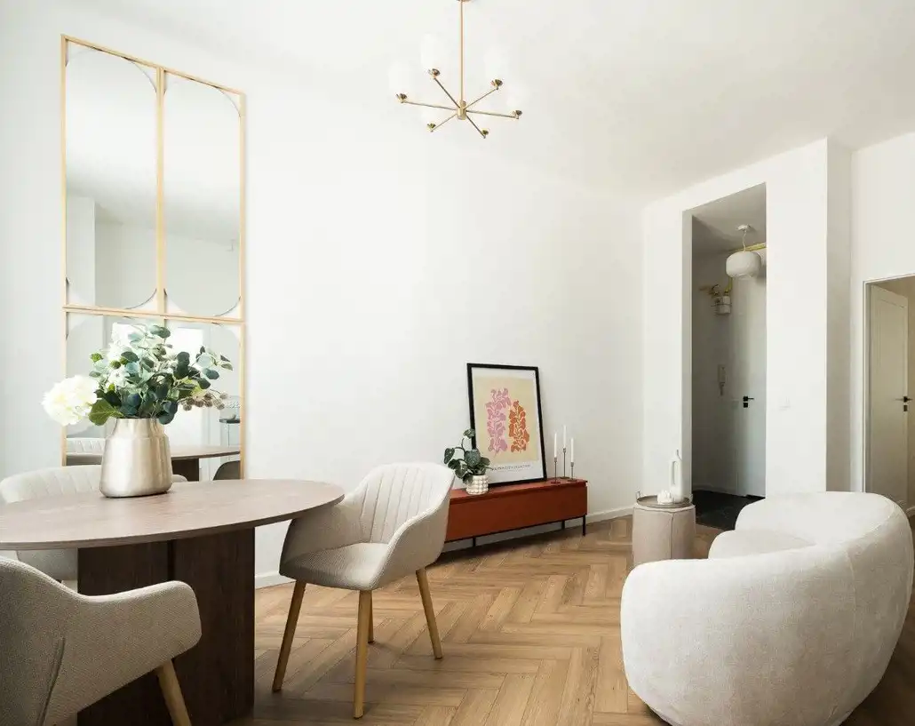 Wnętrze zaprojektowane w jasnych, neutralnych barwach, z dbałością o detal.