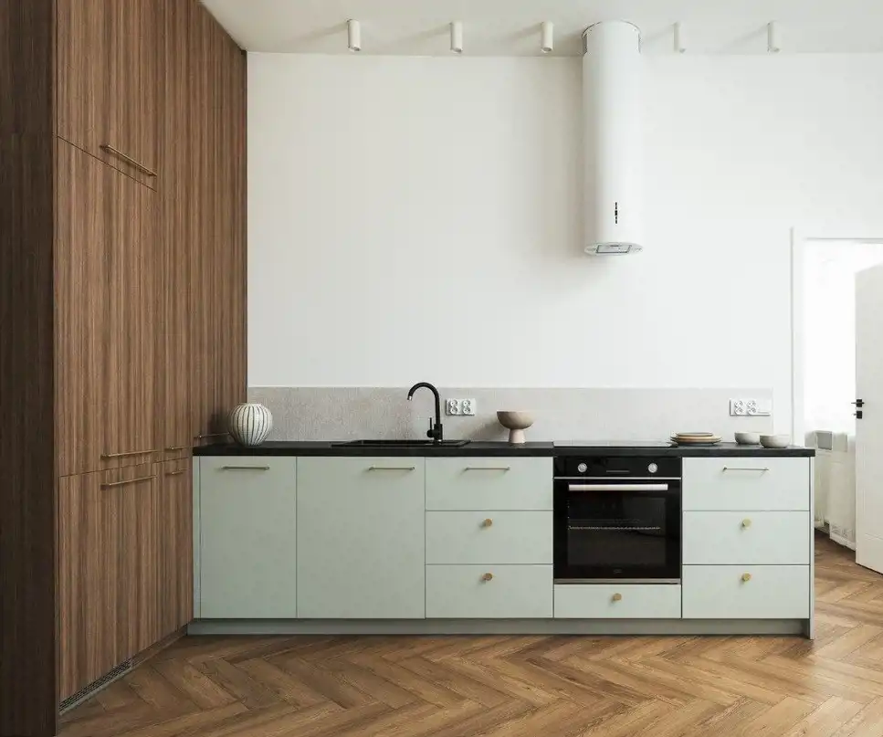 Kuchnia z nowym sprzętem AGD, gotowa do użytku.