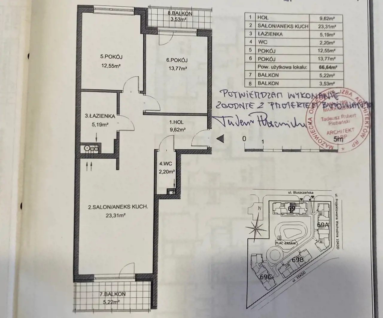 - Charakterystyka mieszkania 66.64 m2, 3 pokoje