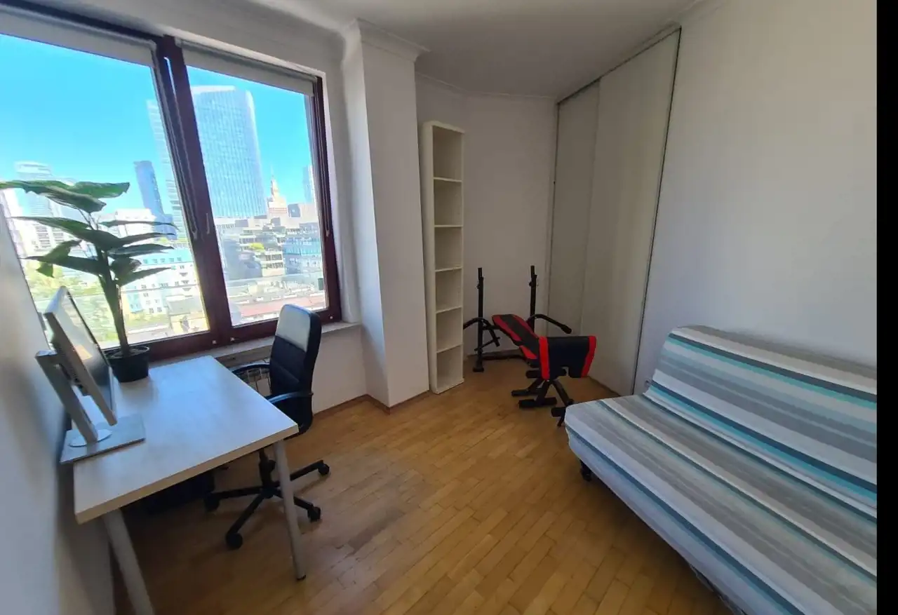Dodatkowymi atutami mieszkania są: parkiet na podłodze, narożnik w salonie, przepiękna nowoczesna kuchnia. Sypialnie z widokiem na wieżowce i Pałac Kultury, do mieszkania przynależy miejsce parkingowe w garażu podziemnym.
