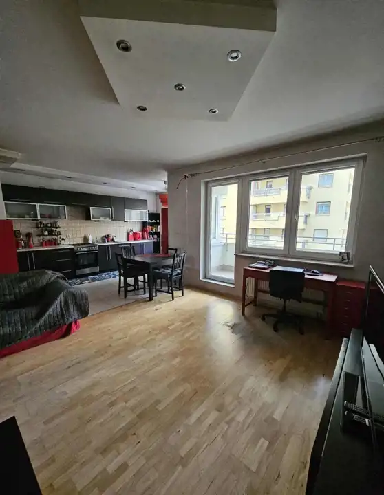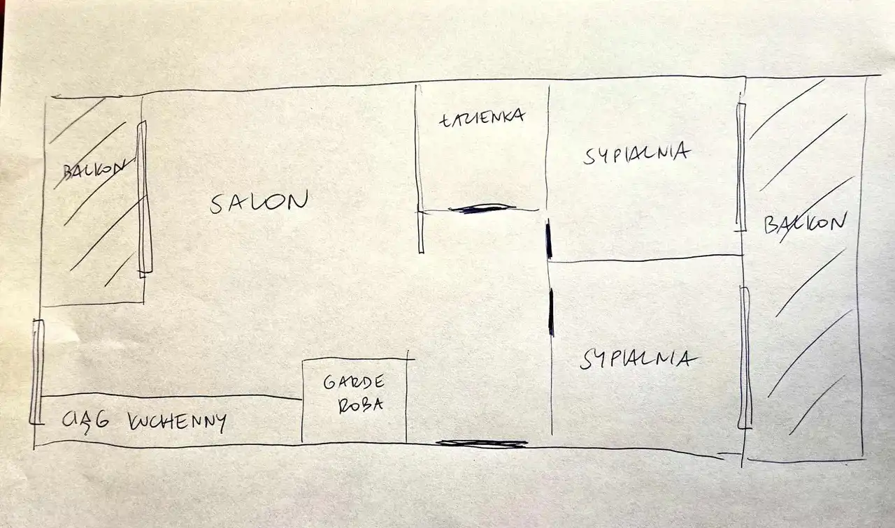 Bardzo wygodne mieszkanie z dwiema sypialniami, bardzo dużym salonem z kuchnią, dużą garderobą (można ją zamienić na WC), łazienką z wanną i dwoma balkonami (loggiami precyzyjnie).