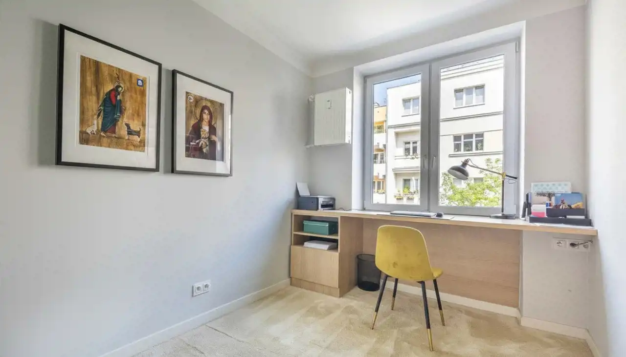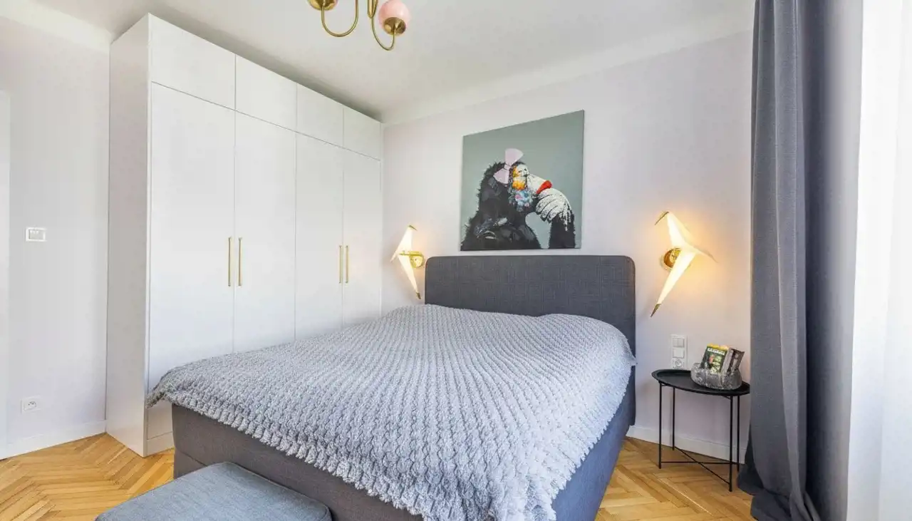 Mieszkanie dwustronne, wysokość 2,8 m, część dzienna wyposażona w klimatyzację. Lokal kilka lat temu przeszedł gruntowny remont, w ramach którego między innymi zmieniono układ funkcjonalny i wymieniono wszystkie instalacje.