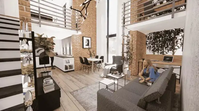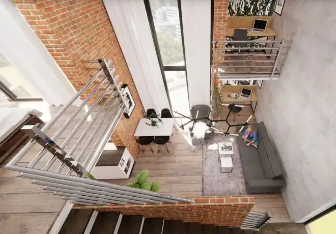 Spacious, bright interiors, high ceilings (up to approx. 5 m), and the mezzanine create a unique loft-style atmosphere. The apartment is offered in a developer standard.
