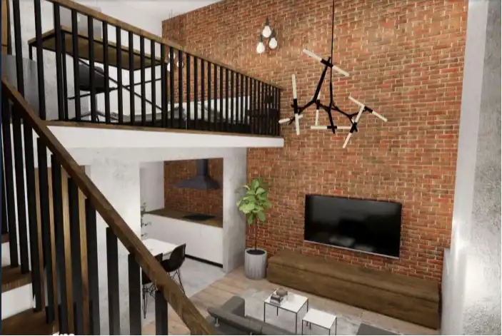 a) living room with kitchenette,