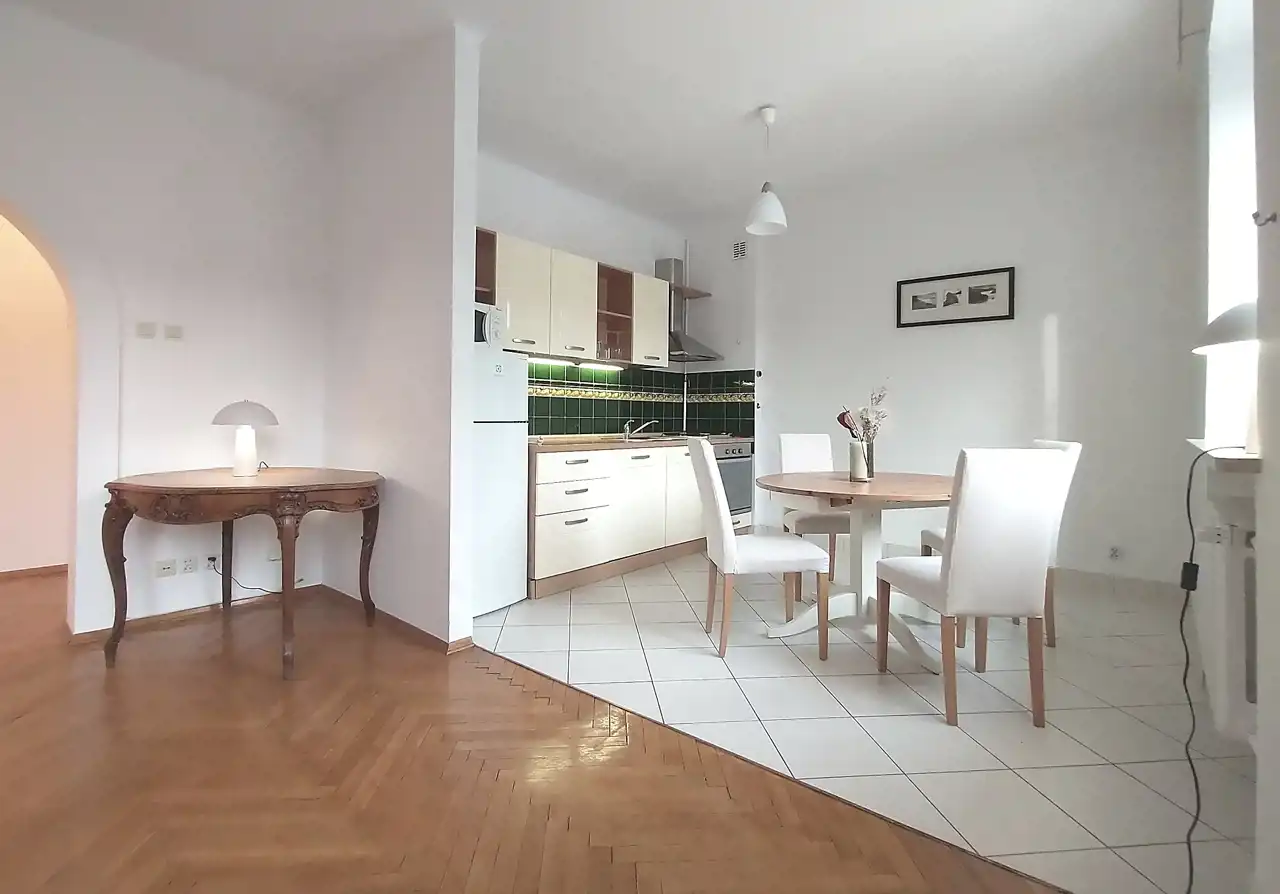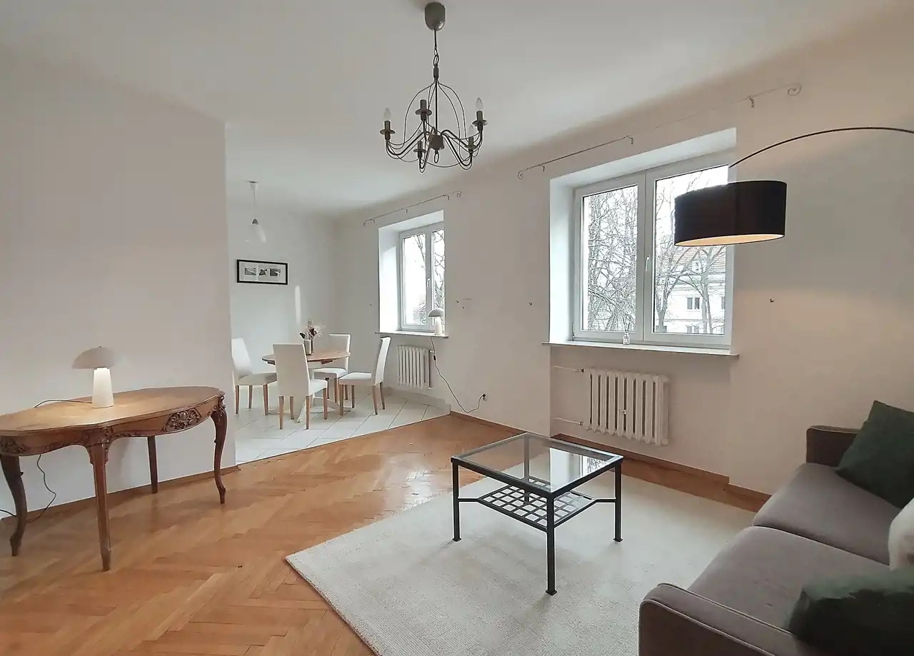 Przestronne, ciche mieszkanie, położone w prestiżowej lokalizacji, przy Trakcie Królewskim, w zadbanej, kamienicy odbudowanej po II wojnie Światowej, przy ul. Nowy Świat 47A. Wspaniała lokalizacja i brak uciążliwości wynikające z położenia w II linii zabudowy (cisza, spokój). Mieszkanie po remoncie, wszystkie instalacje są wymienione,. Mieszkanie składa się z pokoju dziennego o powierzchni ok. 17mkw., połączonego z widną kuchnią (z zabudową) o pow. ok 10 m.kw. sypialni . ok. 13 mkw, łazienki razem z toaletą 6mkw. oraz przedpokoju 5m2 i jest wyposażone w pralkę, suszarkę, lodówkę, zmywarkę, kuchenkę mikrofalową i umeblowane (możliwa sprzedaż z wyposażeniem). Lokal jest cichy, jasny, okna wychodzą na skwer na południowy wschód.