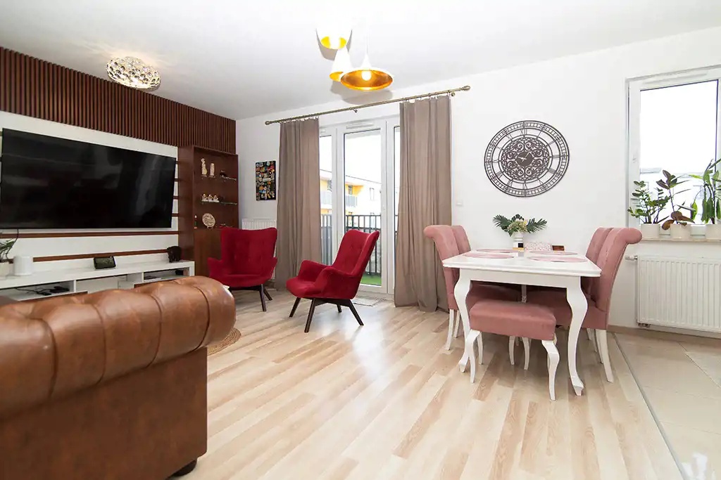 - Funkcjonalna kuchnia z pełnym wyposażeniem AGD.