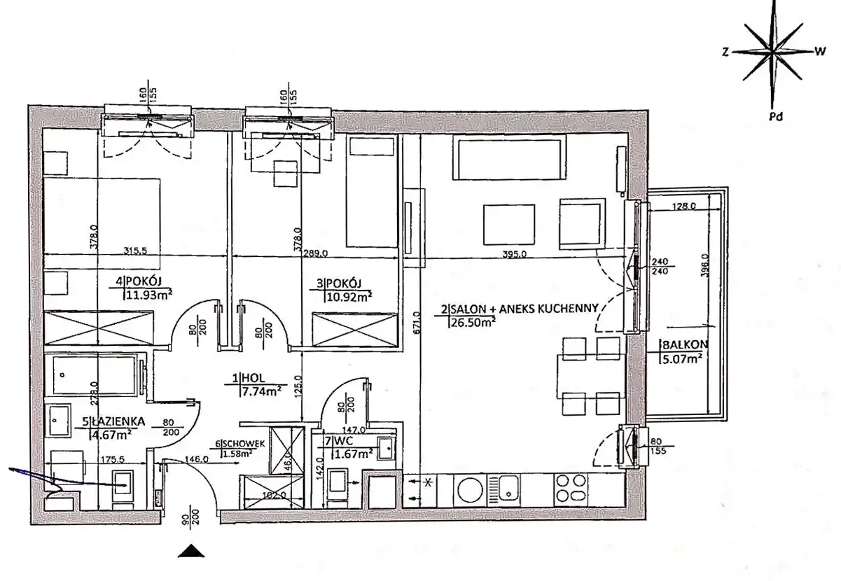 - Charakterystyka mieszkania 67.8 m2, 3 pokoje