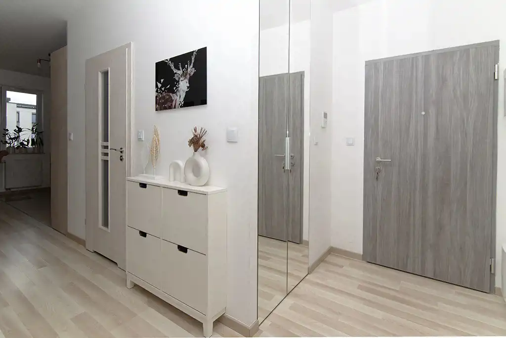 - Pojemne szafy w każdym pokoju i w przedpokoju.