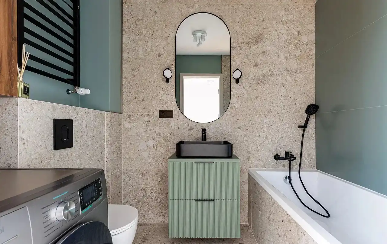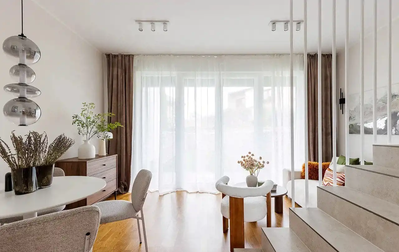 - Spójny, nowoczesny projekt wnętrza – meble i wyposażenie w cenie