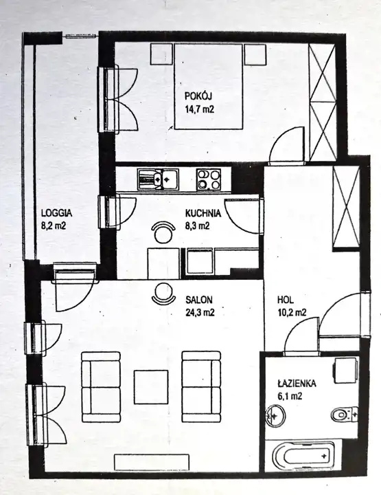 - Wyjście na loggię niezależnie z 3 pomieszczeń
