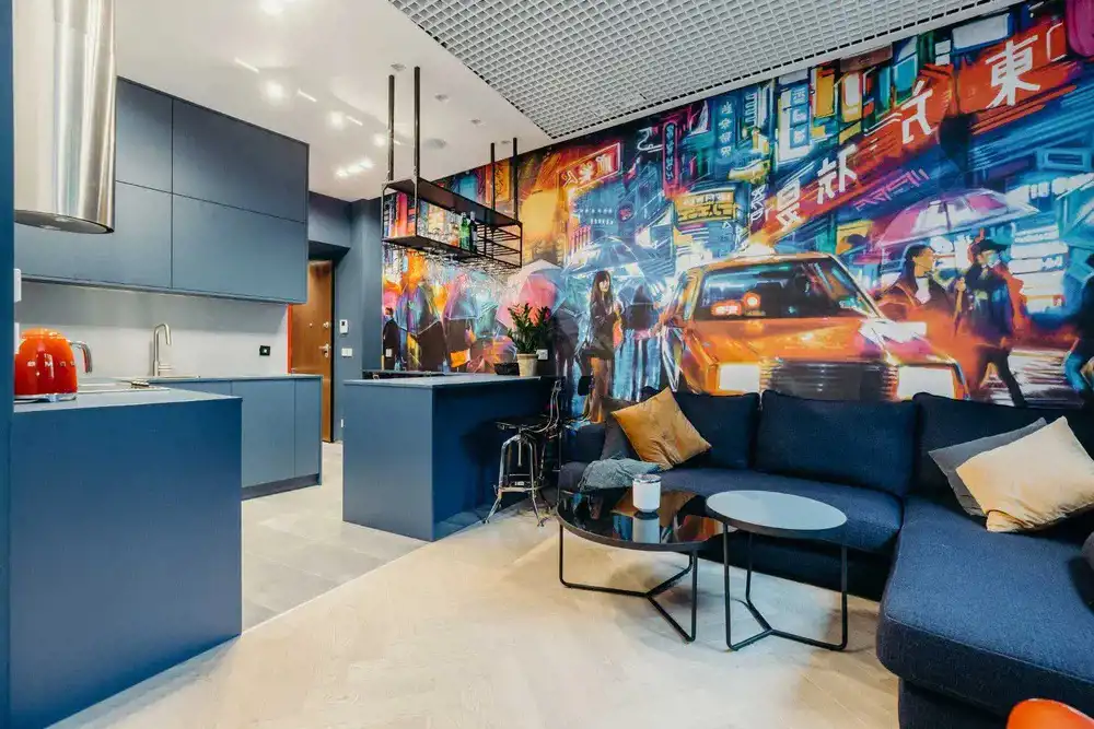 Kącik biurowy ozdobiony oryginalnymi grafikami znanego artysty ulicznego - Mr. Brainwash.
