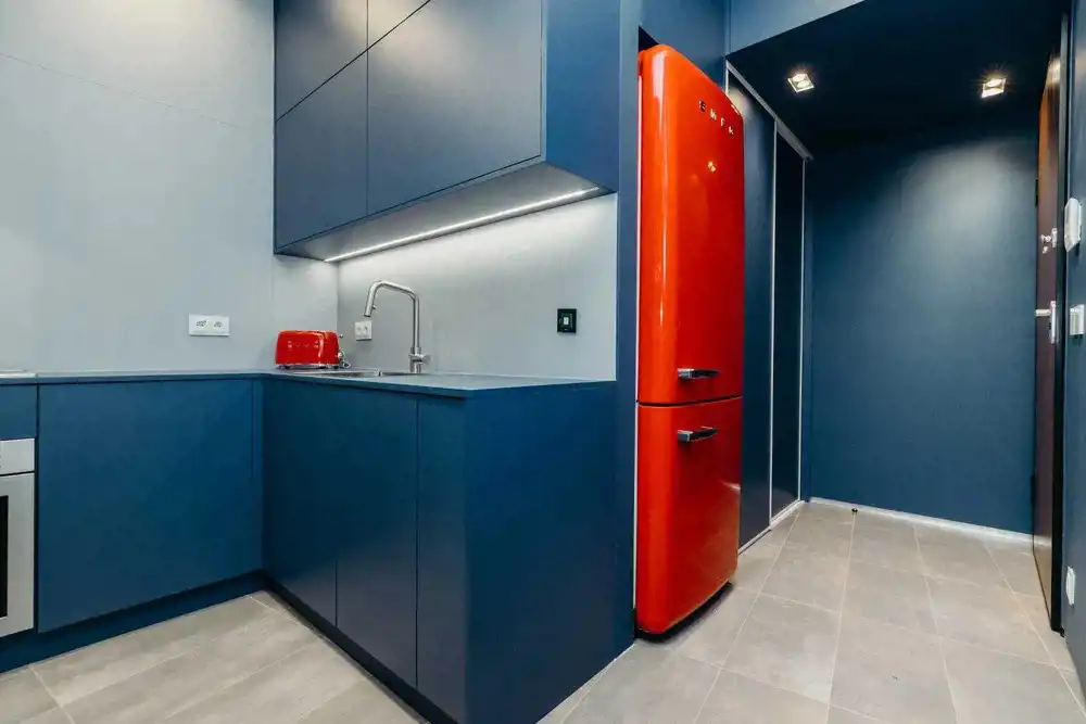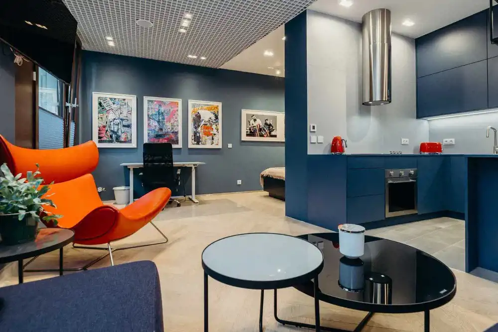 W pełni wyposażona kuchnia z wysokiej klasy sprzętem SMEG: płyta indukcyjna, piekarnik, lodówka z zamrażarką, zmywarka oraz funkcjonalna wyspa barowa z kompozytowym blatem,