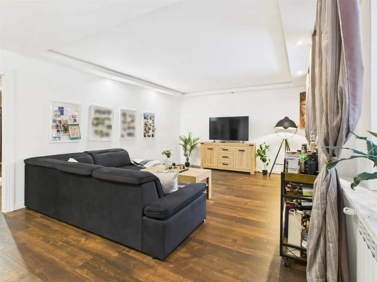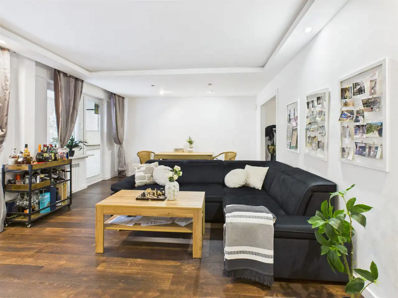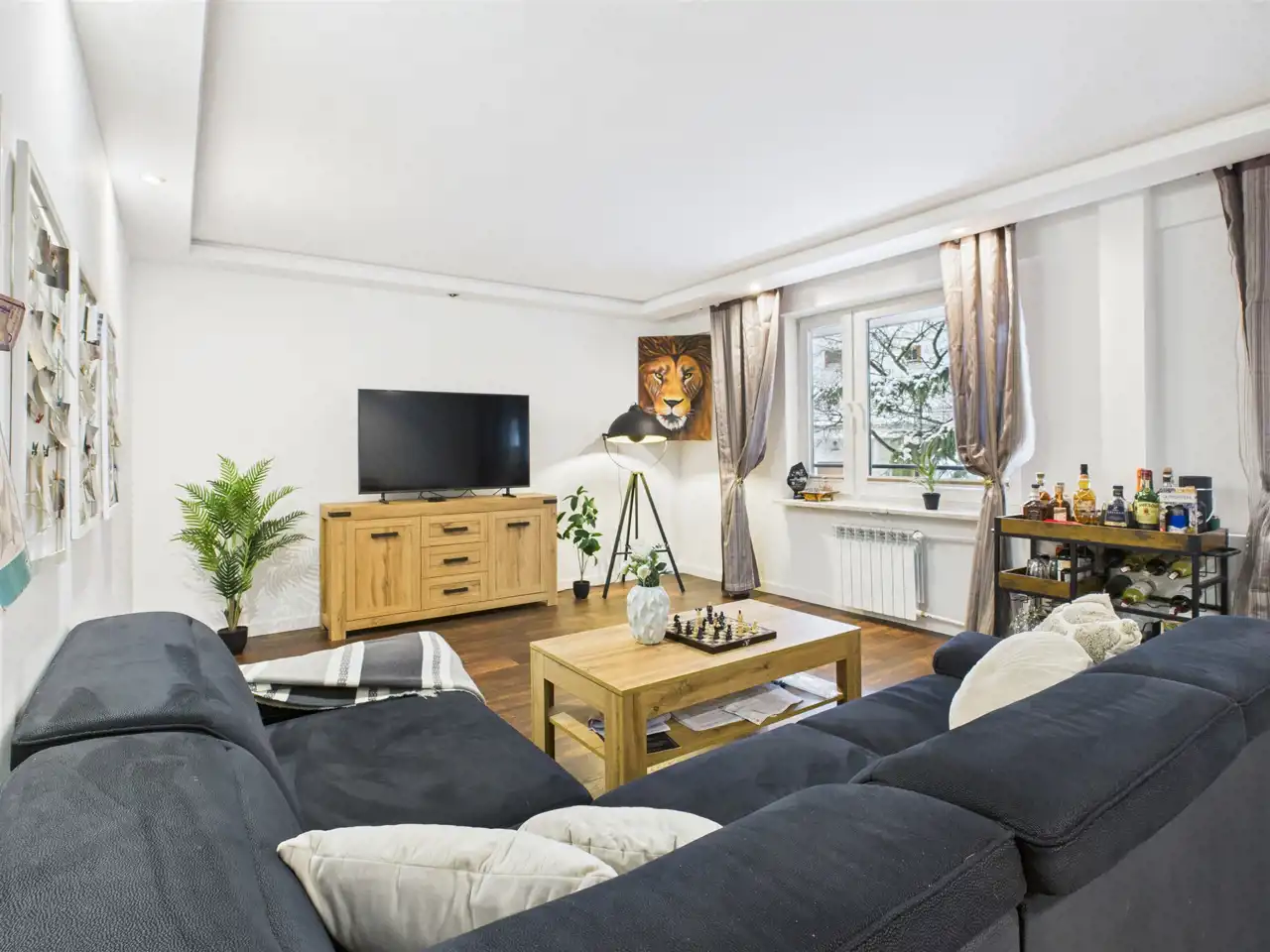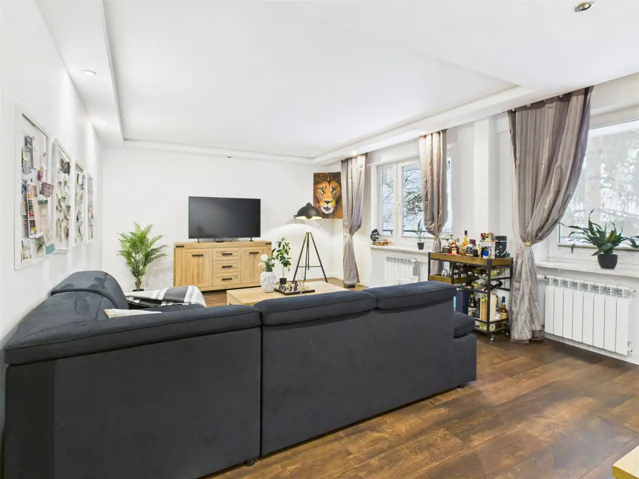 Mieszkanie jest bardzo ustawne, z wyraźnym podziałem na strefę dzienną i prywatną.