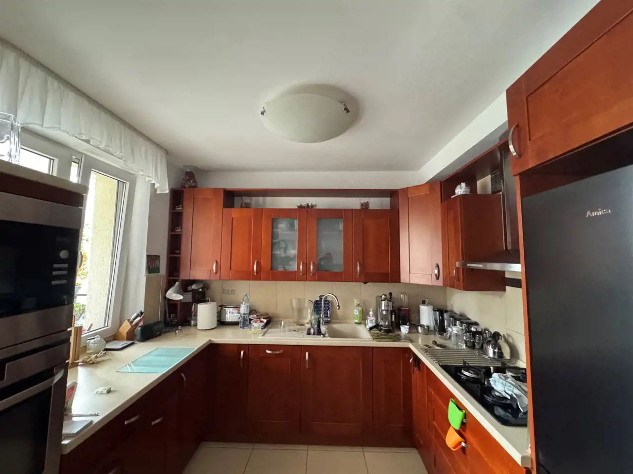 Pięciopokojowe mieszkanie na Pradze-Południe. Salon z widną- otwartą kuchnią i wyjściem na duży balkon, trzy ustawne pokoje plus duża sypialnia główna, łazienka z wanną i prysznicem oraz oddzielne wc. W przedpokoju dwie szafy wnękowe. Mieszkanie w stanie bardzo dobrym, widne, ciche, dwustronne. Garaż płatny dodatkowo 50000zł. Drugie miejsce przed garażem. Piwnica 5m2 w cenie lokalu. Osiedle kameralne z niską zabudową. Znakomita lokalizacja w pobliżu komunikacji miejskiej. Sklepy, basen, tereny zielone w pobliżu. Zapraszamy do oglądania.