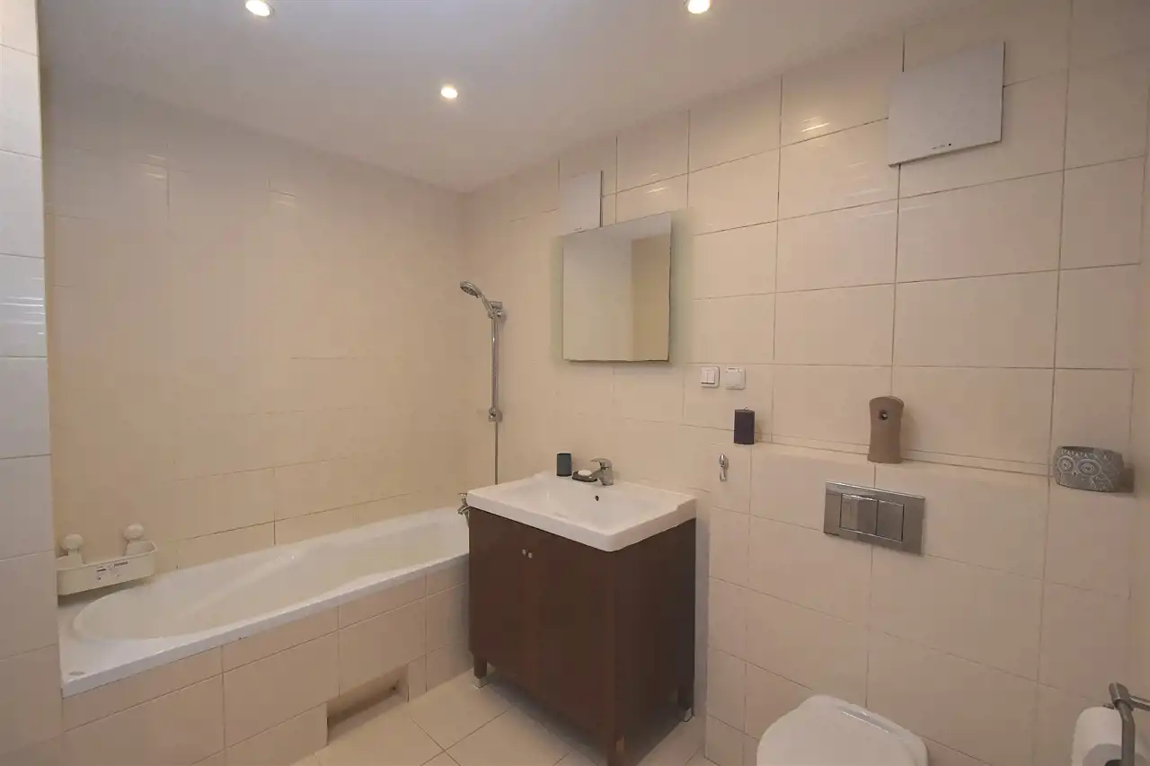 Mieszkanie jest umeblowane i gotowe do zamieszkania, wymaga jedynie odświeżenia. Kuchnia z pełną zabudową - płyta grzewcza, piekarnik, okap, zmywarka i lodówka. Łazienka wyposażona w wannę, pralkę oraz szafkę z umywalką i lustrem.