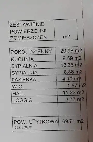 Powierzchnia użytkowa: [69,71 m2]