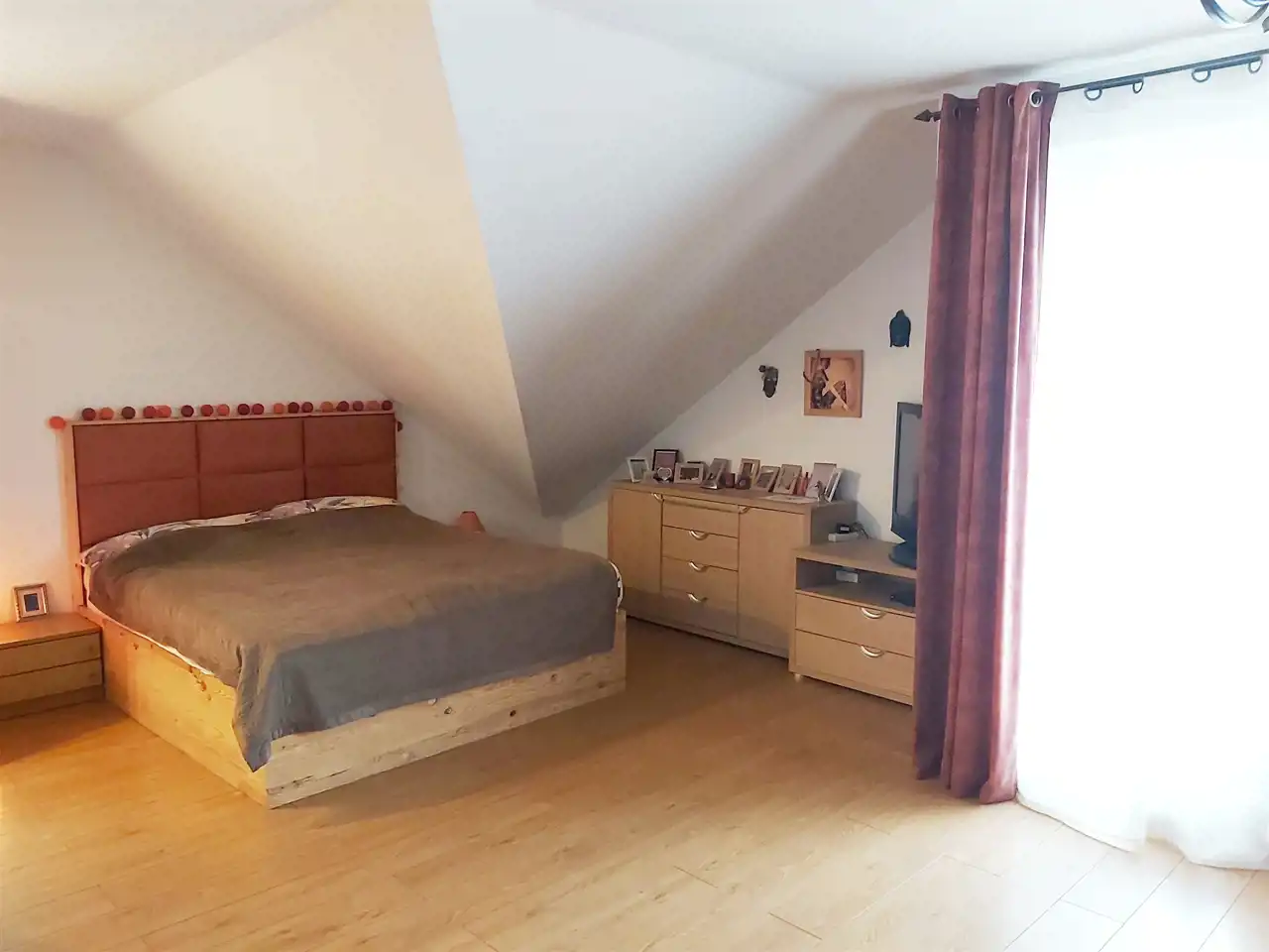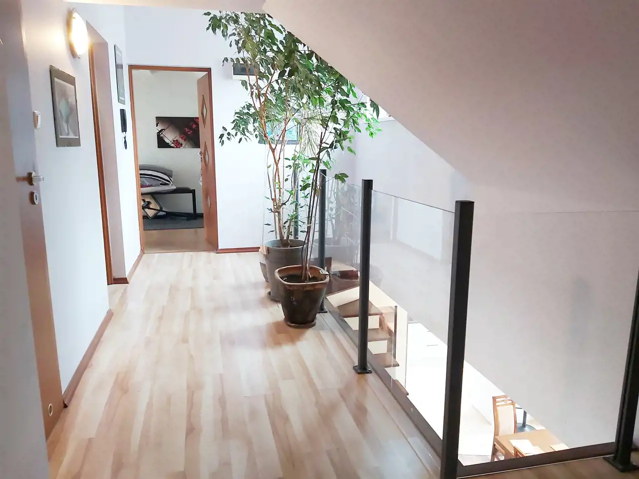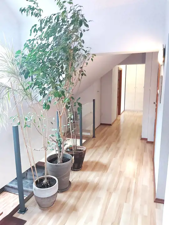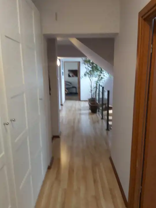 na drugim poziomie: 4 sypialnie, każda z balkonem. Jedna z sypialni ma swoją łazienkę, druga łazienka umieszczona jest pośrodku dużego korytarza. Łącznie są aż 4 balkony! Ekspozycja okien wschód-zachód. Dzięki dużej ilości okien, mieszkanie jest bardzo widne.