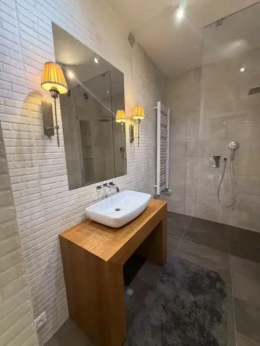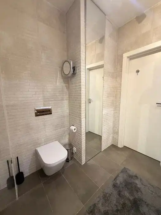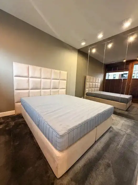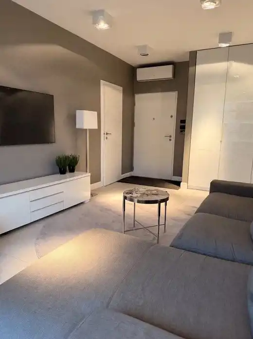 Wnętrze zostało zaprojektowane przez architekta z użyciem materiałów o wysokiej jakości, spójnej kolorystyce i subtelnym oświetleniem. Na wyposażeniu meble oraz klimatyzacja.