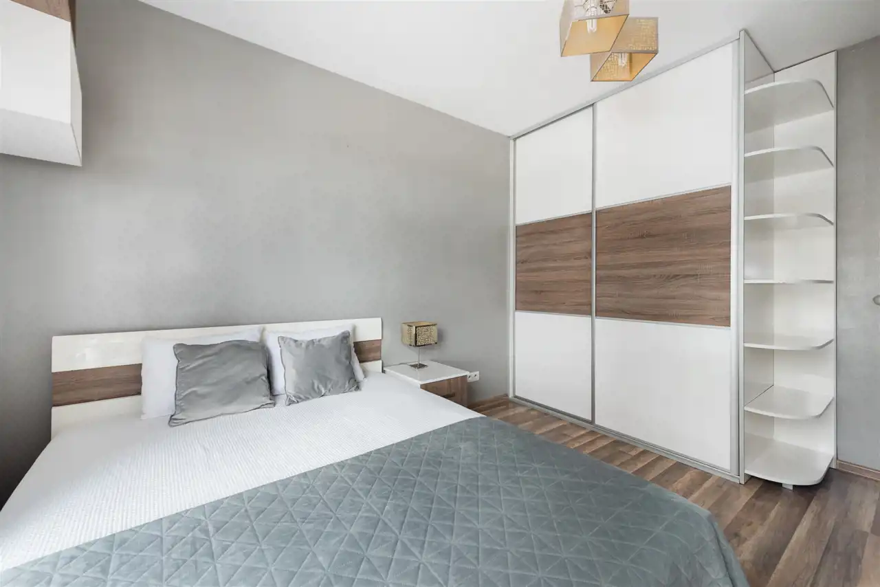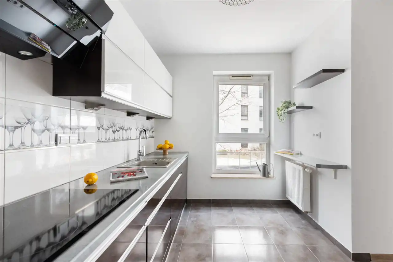 Mieszkanie sprzedawane jest z meblami oraz sprzętem AGD, w tym: lodówką, pralką, suszarką, zmywarką, piekarnikiem, kuchenką mikrofalową oraz dwiema pojemnymi szafami wnękowymi. Istnieje możliwość zabrania wyposażenia z mieszkania.