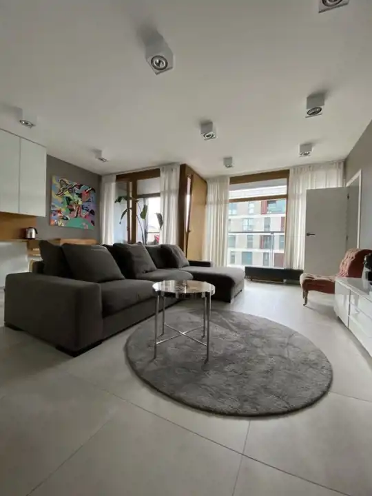 Wnętrze zostało zaprojektowane przez architekta z użyciem materiałów o wysokiej jakości, spójnej kolorystyce i subtelnym oświetleniem. Na wyposażeniu meble oraz klimatyzacja.