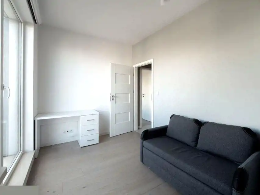 Salon z aneksem kuchennym (z pełnym wyposażeniem), oraz wyjściem na loggię z widokiem na zieloną Warszawę, meble; sypialnia z łożem małżeńskim, toaletką, komodami i szafą; Gabinet z biurkiem szafkami i kanapą. Z gabinetu można wyjść na balkon z widokiem na patio; Funkcjonalny Hol z wbudowaną szafą do przechowywania garderoby; Nowoczesna łazienka z wanną i prysznicem. Komórka lokatorska, która przynależy do mieszkania (dodatkowo płatna w cenie 28000 zł). Miejsce postojowe w garażu podziemnym, w cenie 55tys. CENA DO NEGOCJACJI.