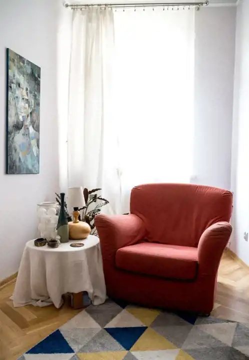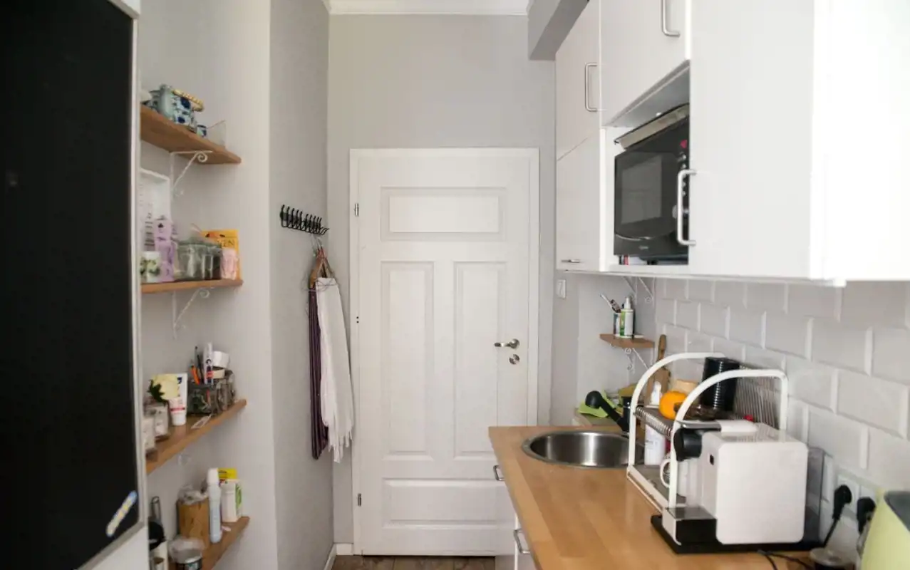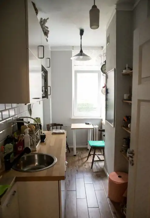 Mieszkanie po generalnym remoncie: wymiana stolarki okiennej, nowe instalacje wewnętrzne, wymianę drzwi, tynki, malowaniem ścian, częściowa rekonstrukcja starego parkietu. Po remoncie także mała kuchnia (zabudowa kuchenna ze zmywarką, mikrofalą i lodówkę).