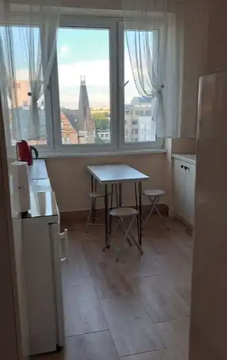 Układ pomieszczeń: pokój dzienny z wyjściem na niewielki balkon, ustawna sypialnia, oddzielna i widna kuchnia, łazienka z WC i przysznicem oraz przedpokój z miejscem na szafę.