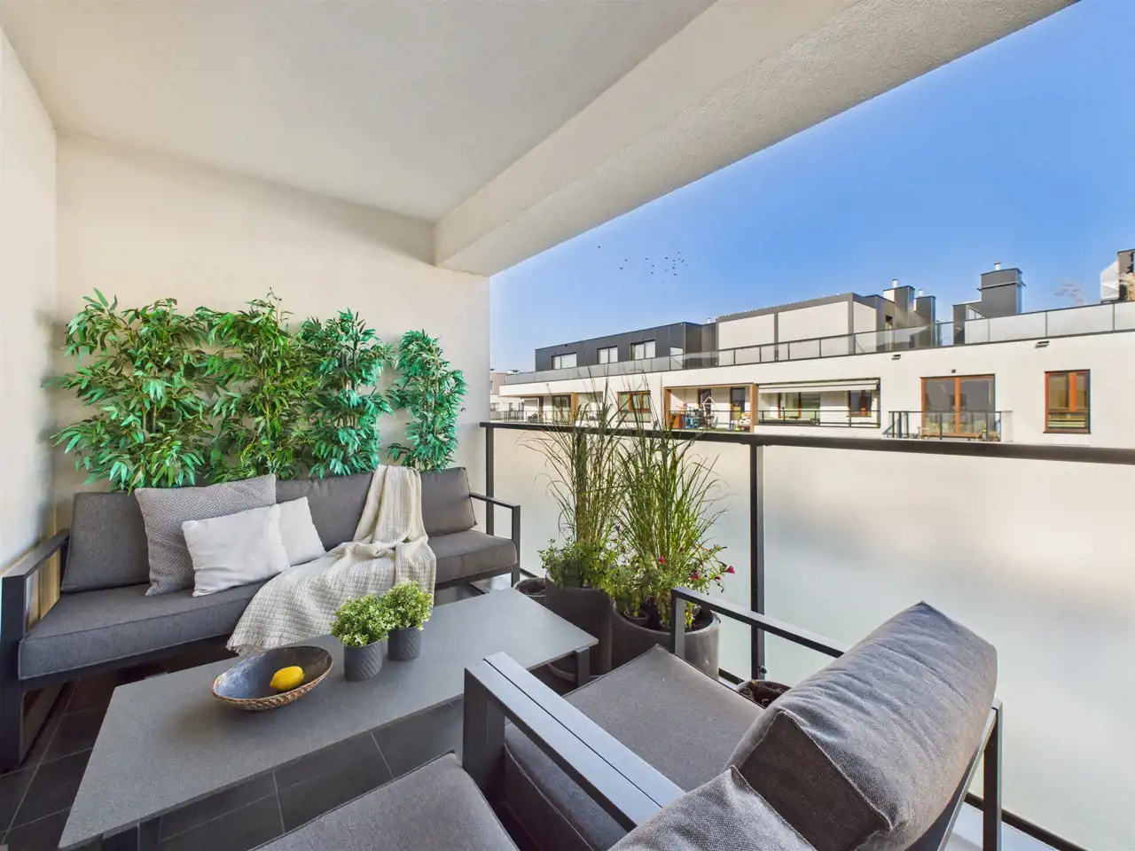 • duża loggia z miejscem do wypoczynku i roślinnością balkonową.