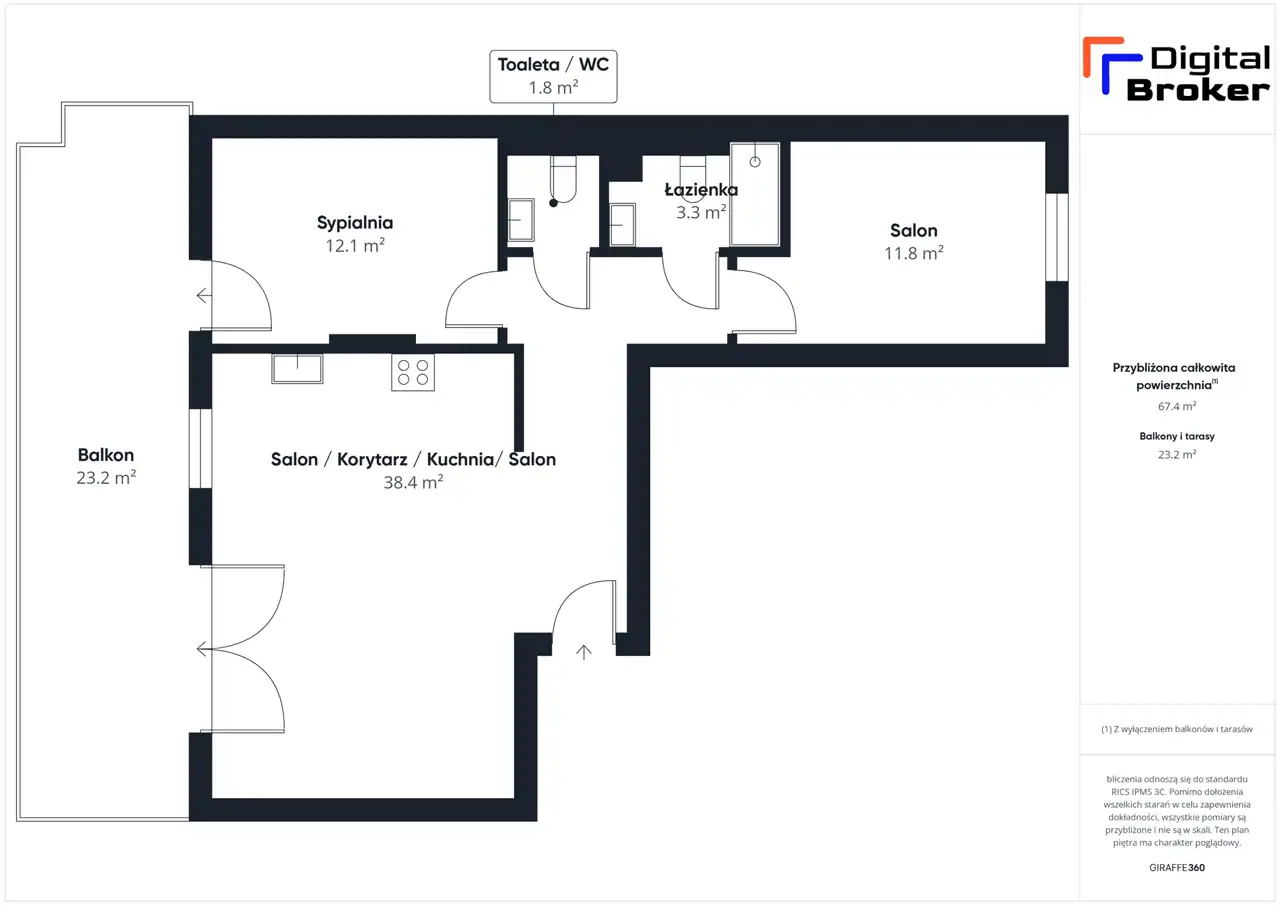 - Charakterystyka mieszkania 67.5 m2, 3 pokoje