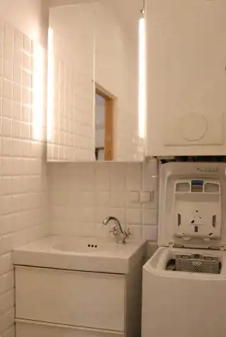 - łazienka (ok. 5m²) wyposażona w wannę i pralkę;