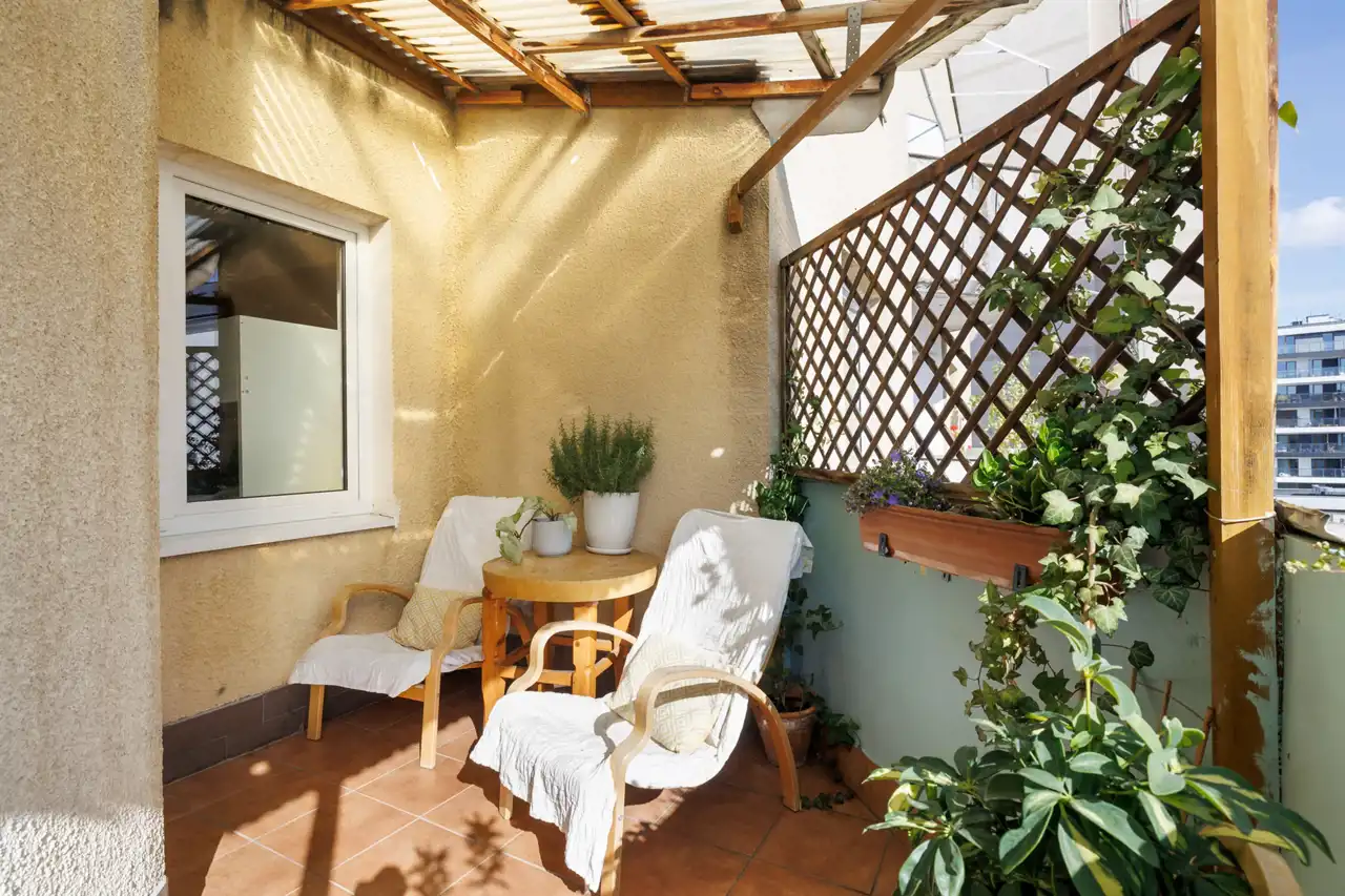 Balkon (ok. 9,5 m2) – zadaszony, usytuowany od strony zielonego patio, idealny na poranną kawę czy wieczorny odpoczynek.