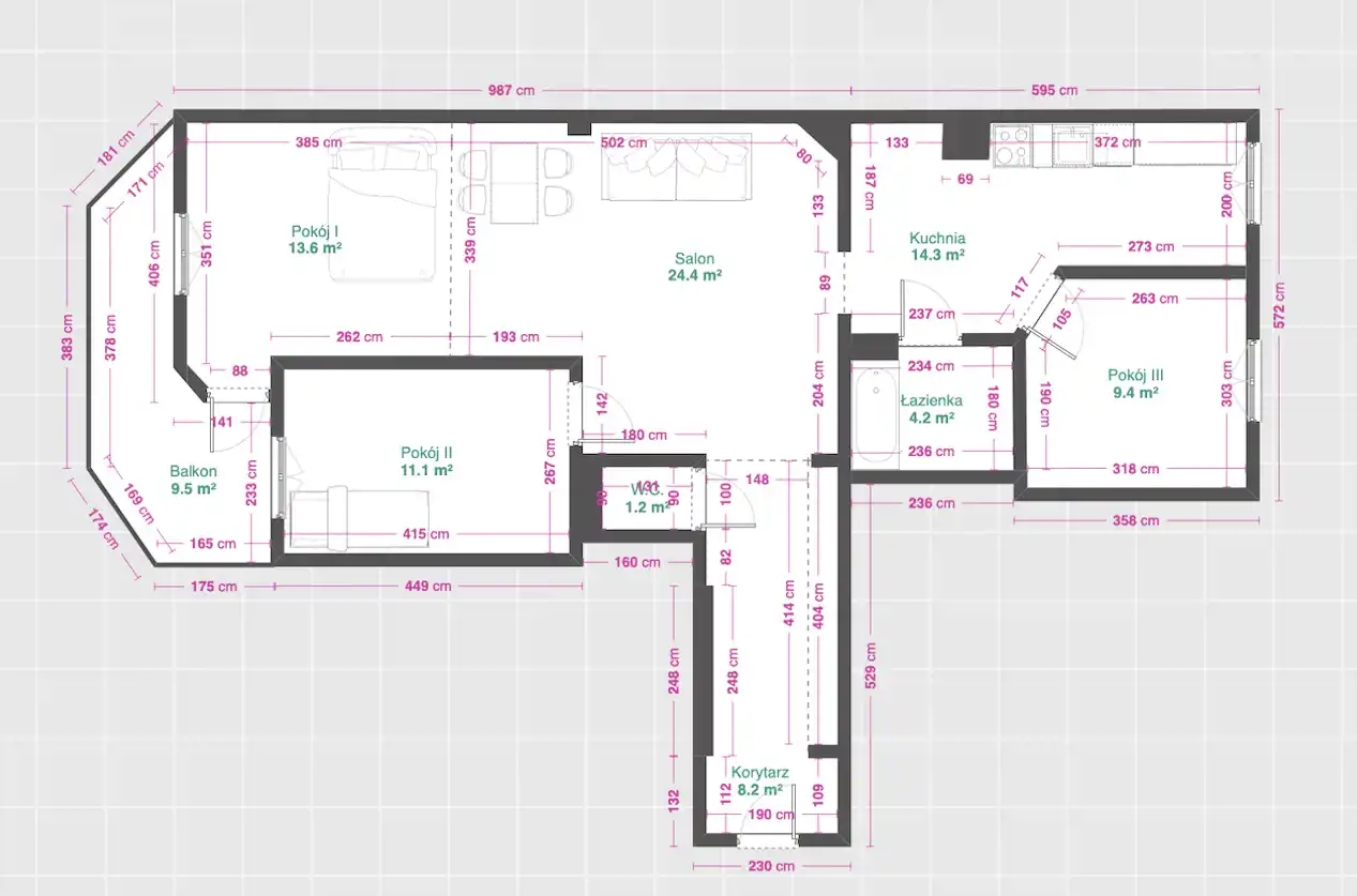 - Charakterystyka mieszkania 86.6 m2, 4 pokoje