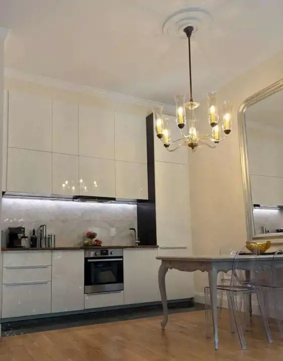 Mieszkanie łączy w sobie kamieniczną wysokość (340 cm) z nowoczesnością i wysokim standardem wykończenia.