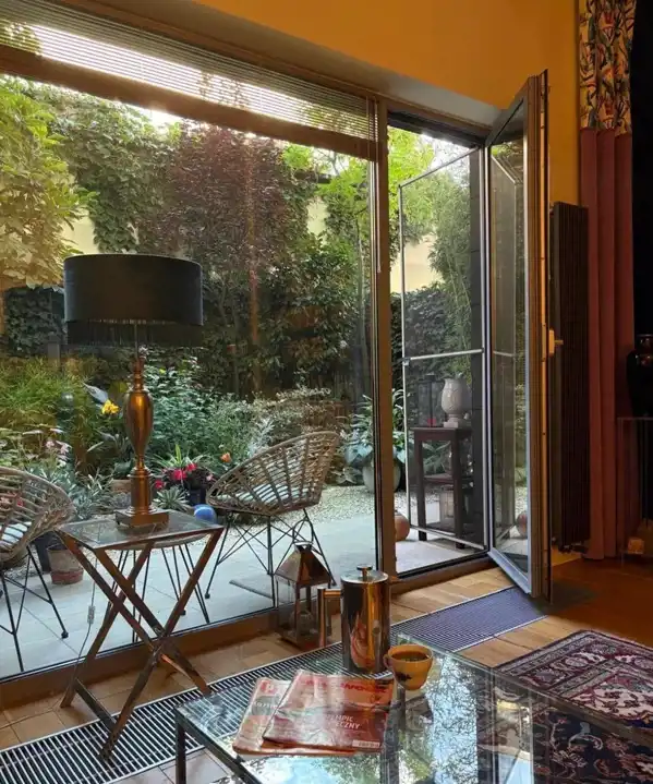 Zarówno z salonu jak i sypialni wyjście na taras i do ogródka.